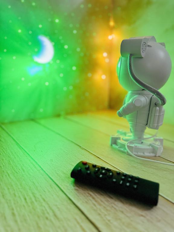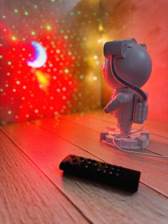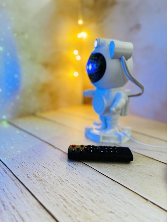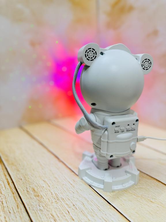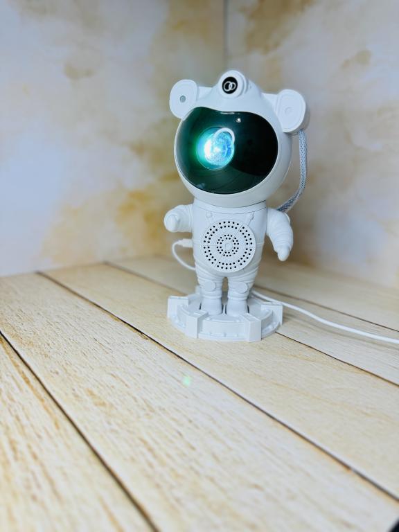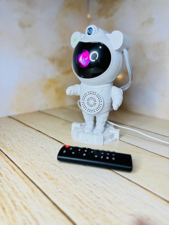 - این محصول یک پروژکتور نور و اسپیکر با طراحی به شکل فضانورد است که علاوه بر ظاهر دوستداشتنی، امکانات متنوعی را ارائه میدهد. با استفاده از ریموت کنترل همراه، میتوانید به راحتی حالتهای مختلف نورپردازی (مانند ستارههای رنگی و افکتهای کهکشانی) را فعال یا تنظیم کنید. همچنین اسپیکر داخلی این دستگاه امکان پخش موسیقی یا صداهای آرامشبخش را فراهم میکند و تجربهای متفاوت و جذاب برای کودکان و حتی بزرگسالان ایجاد میکند.