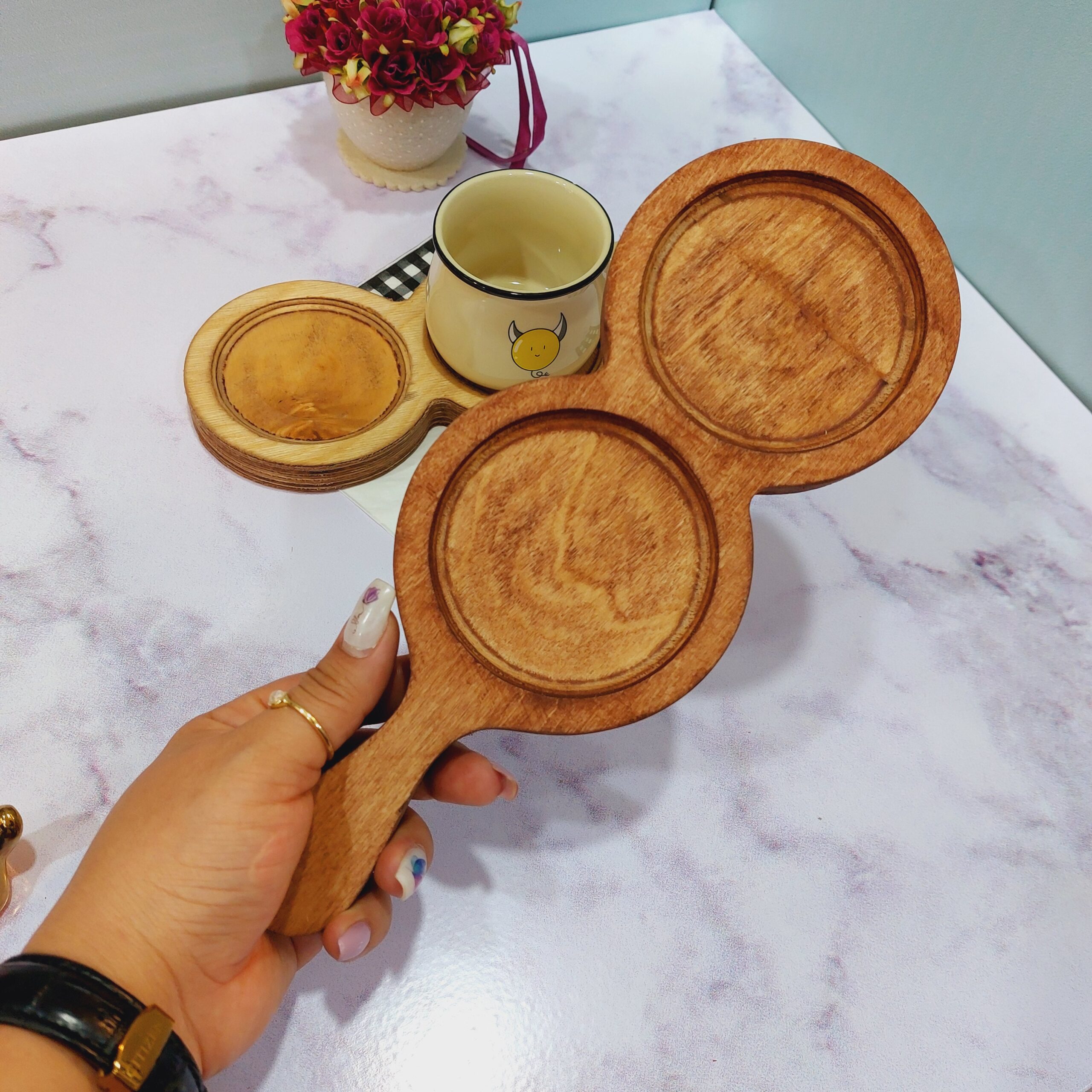 تخته سرو چوبی دوخانه دسته راکتی