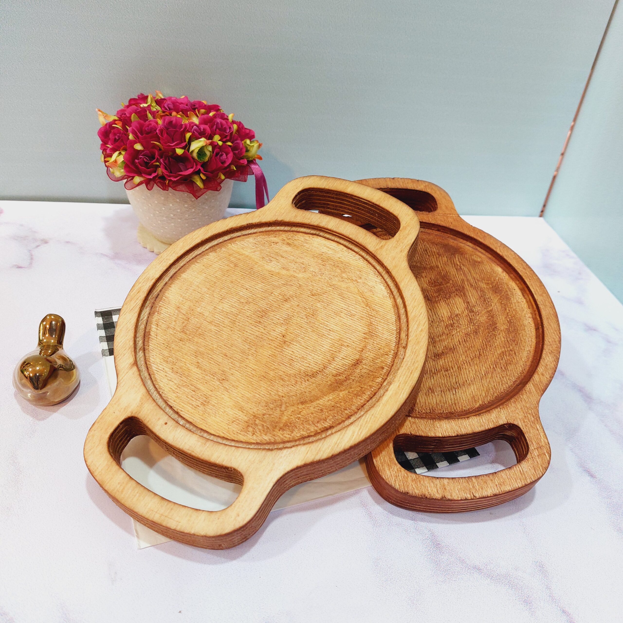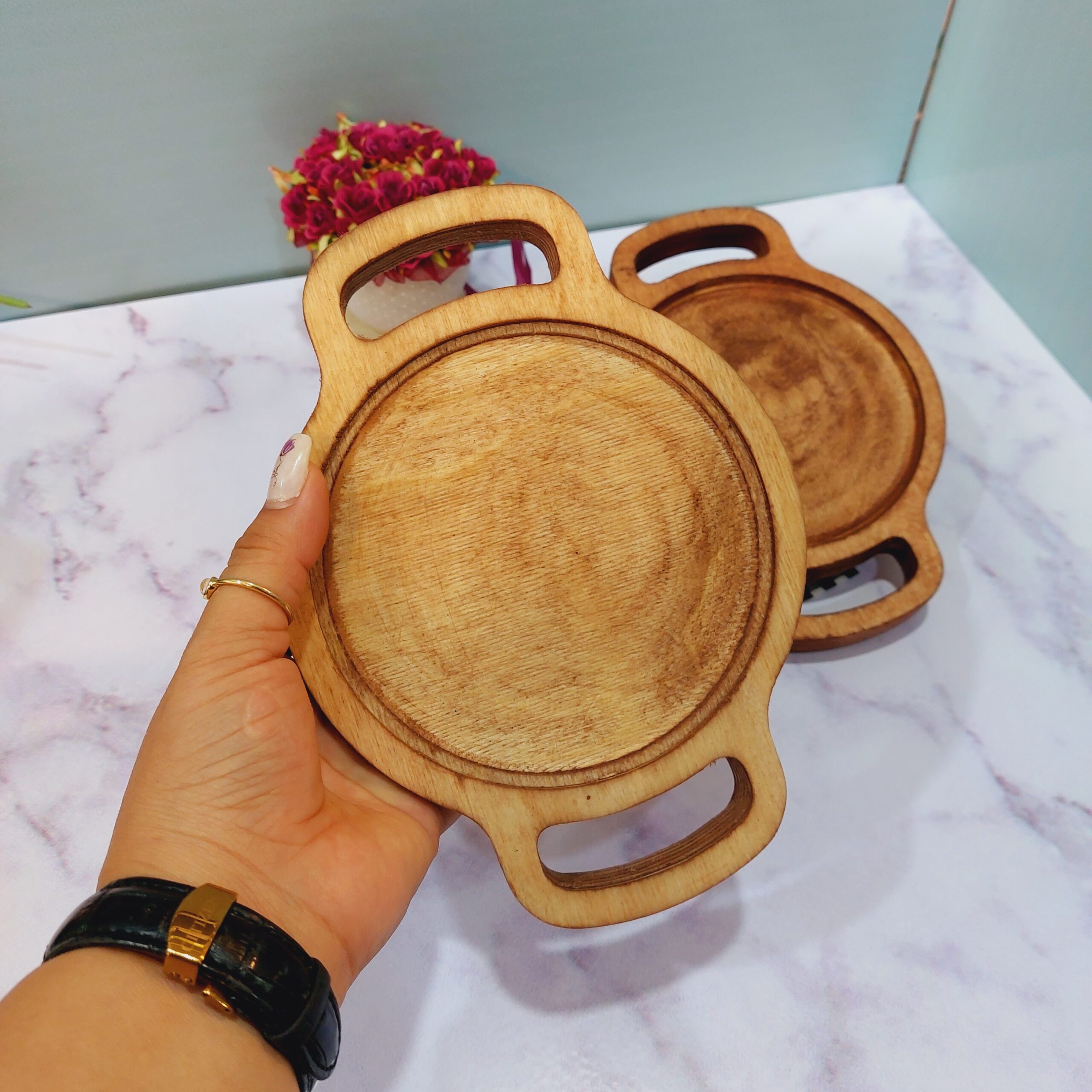 زیر لیوانی چوبی دو دسته فانتزی