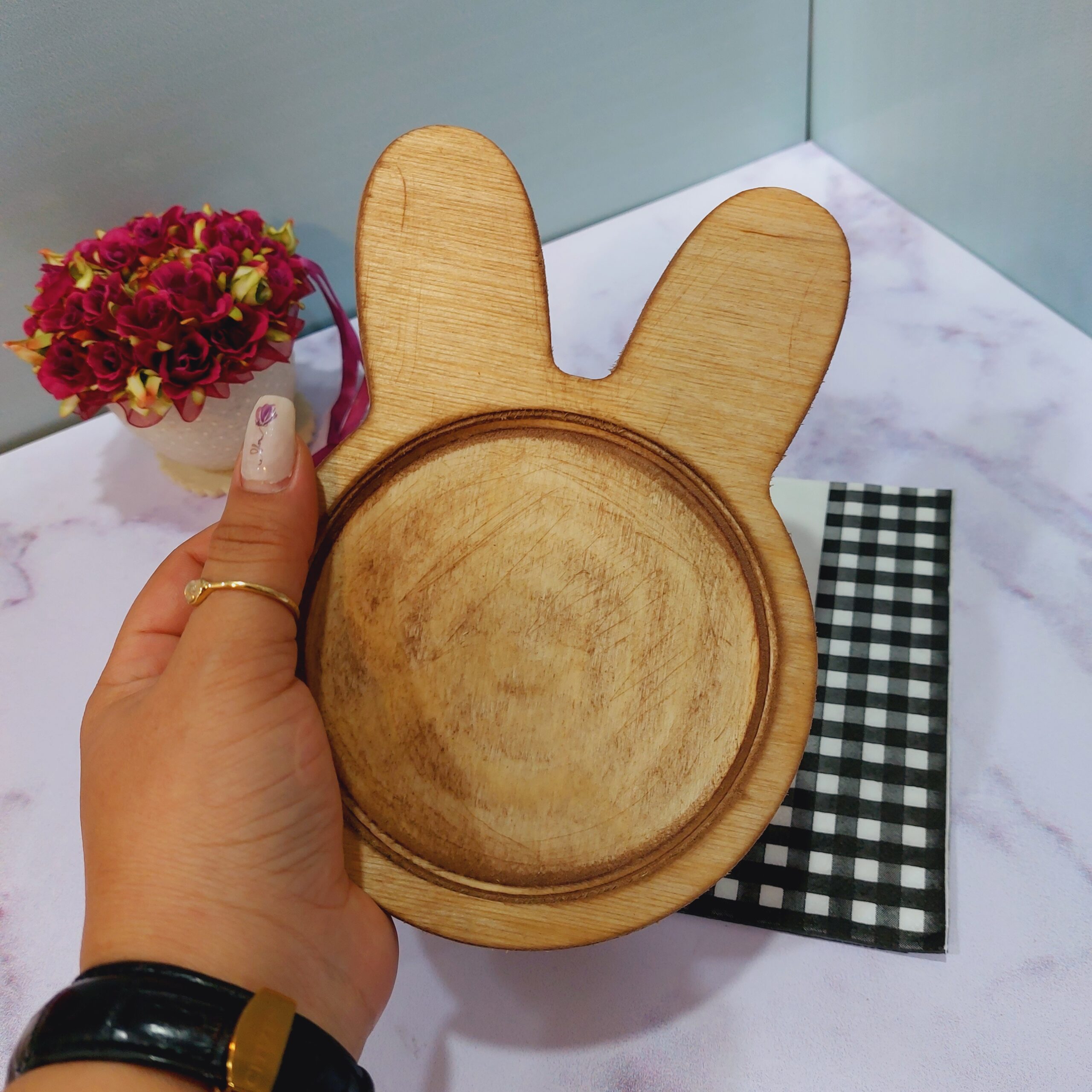 زیر لیوانی طرح خرگوش چوبی