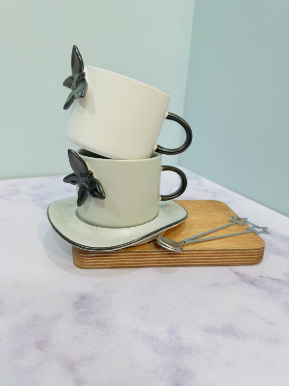 هر ست شامل یک فنجان و نعلبکی و قاشق است
