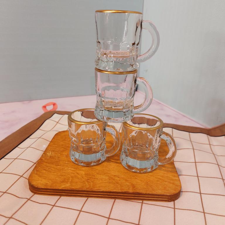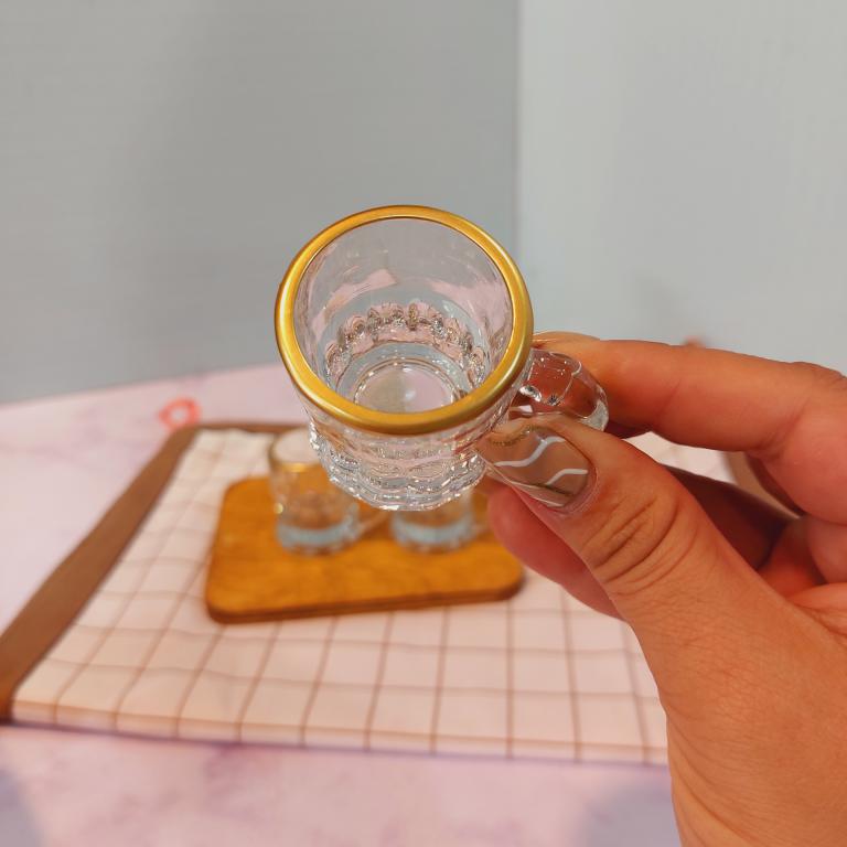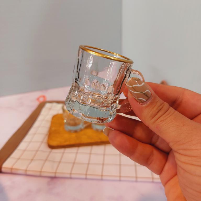 شات بلوری لبه طلایی دسته دار