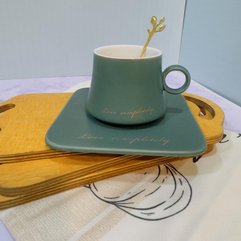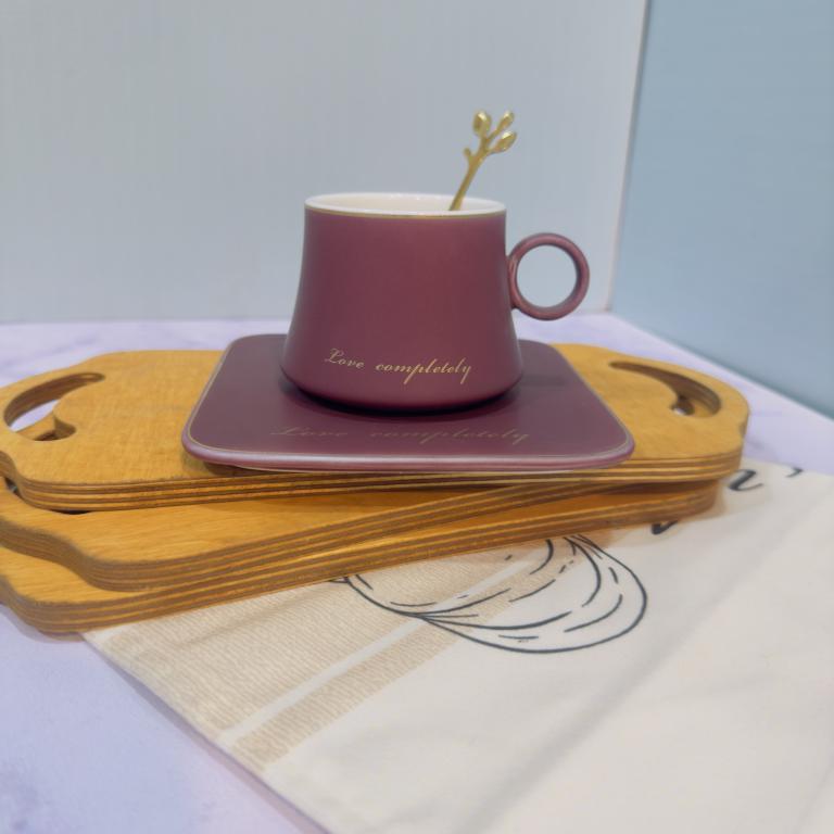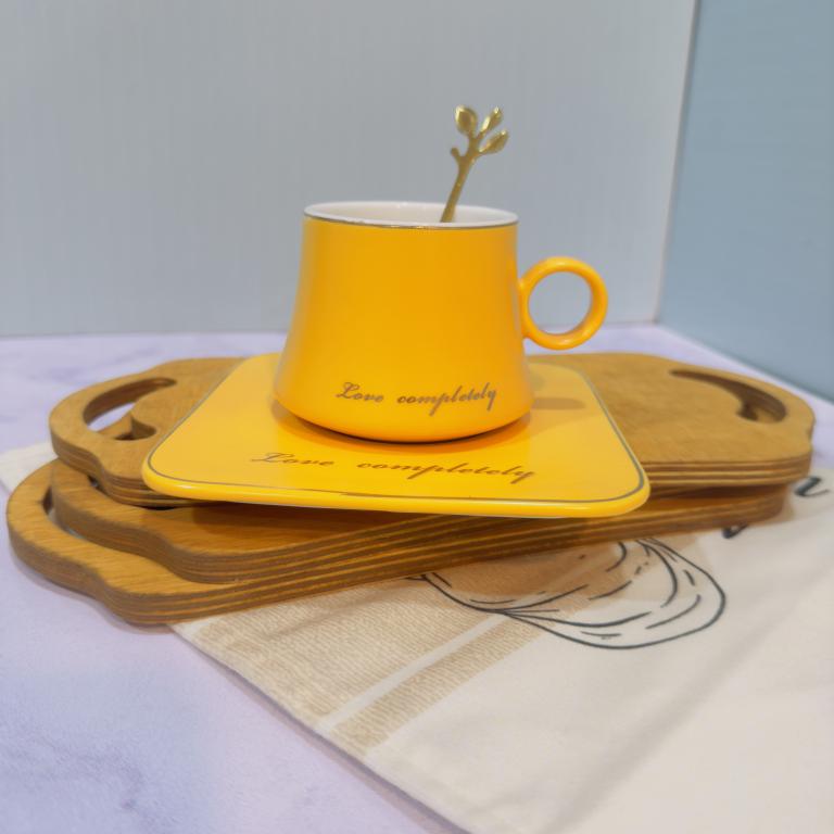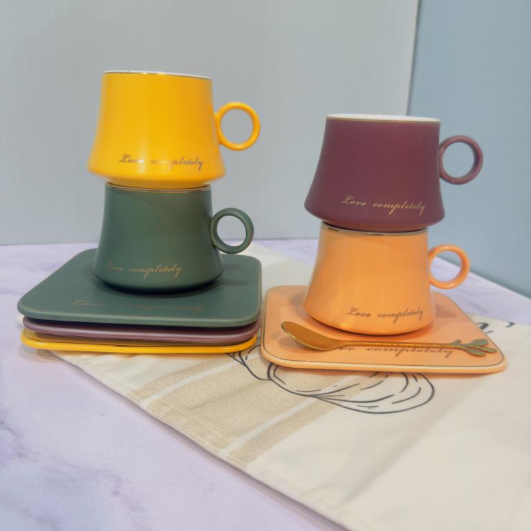 هر ست شامل (یک فنجان و سینی سرامیکی و قاشق استیل است )