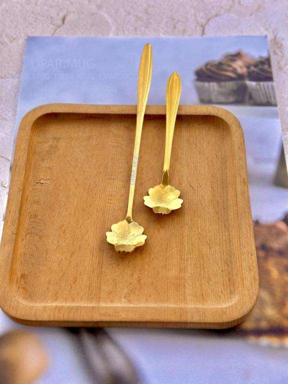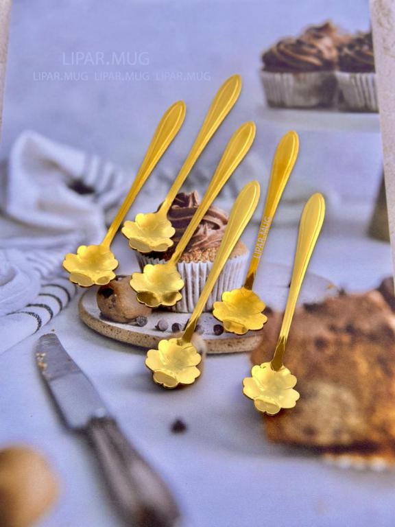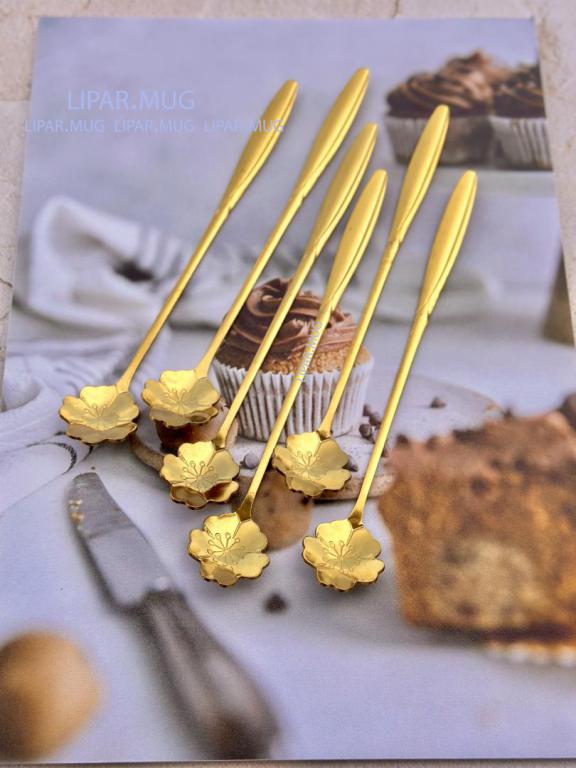 قاشق استیل فانتزی طرح گل طلایی کد 3009
