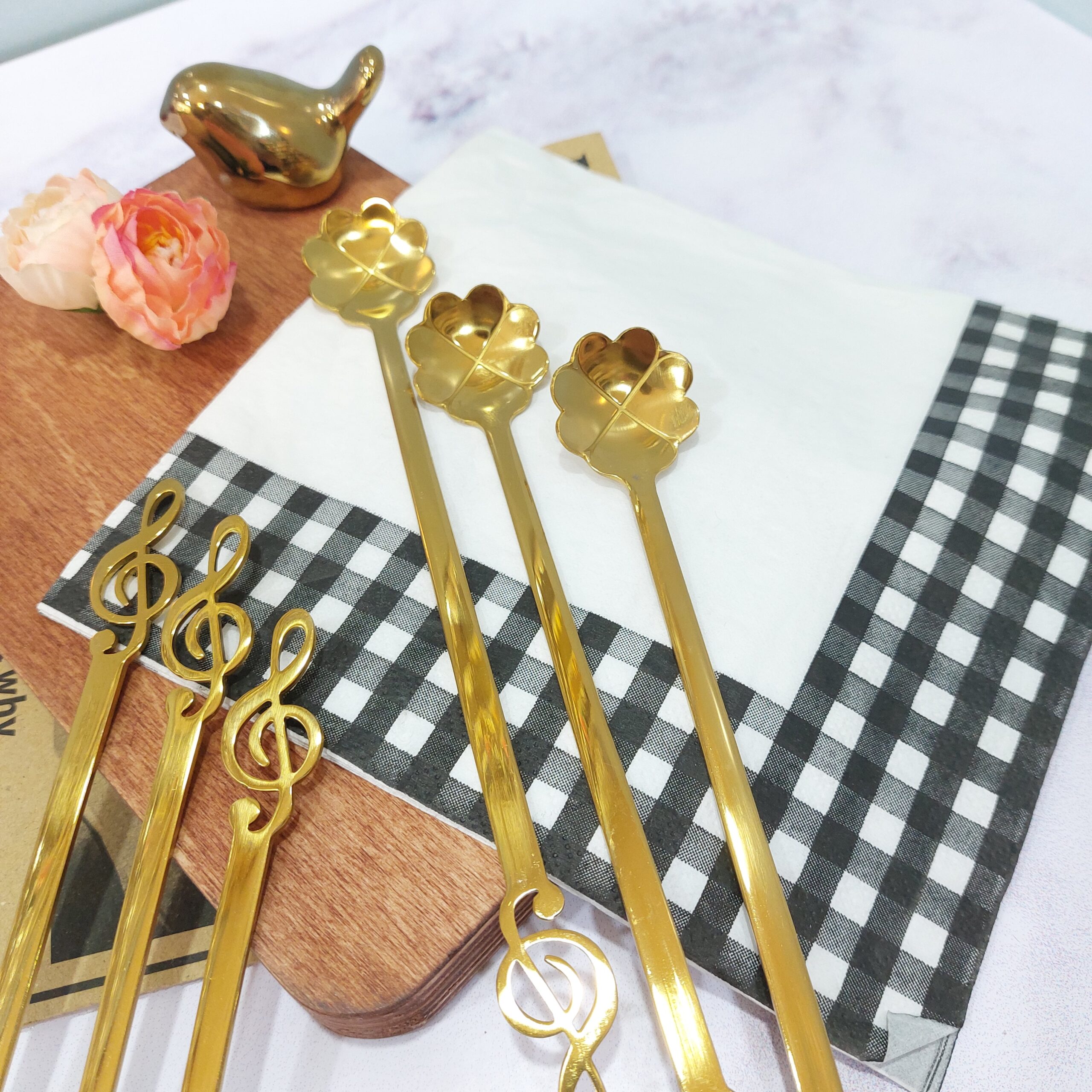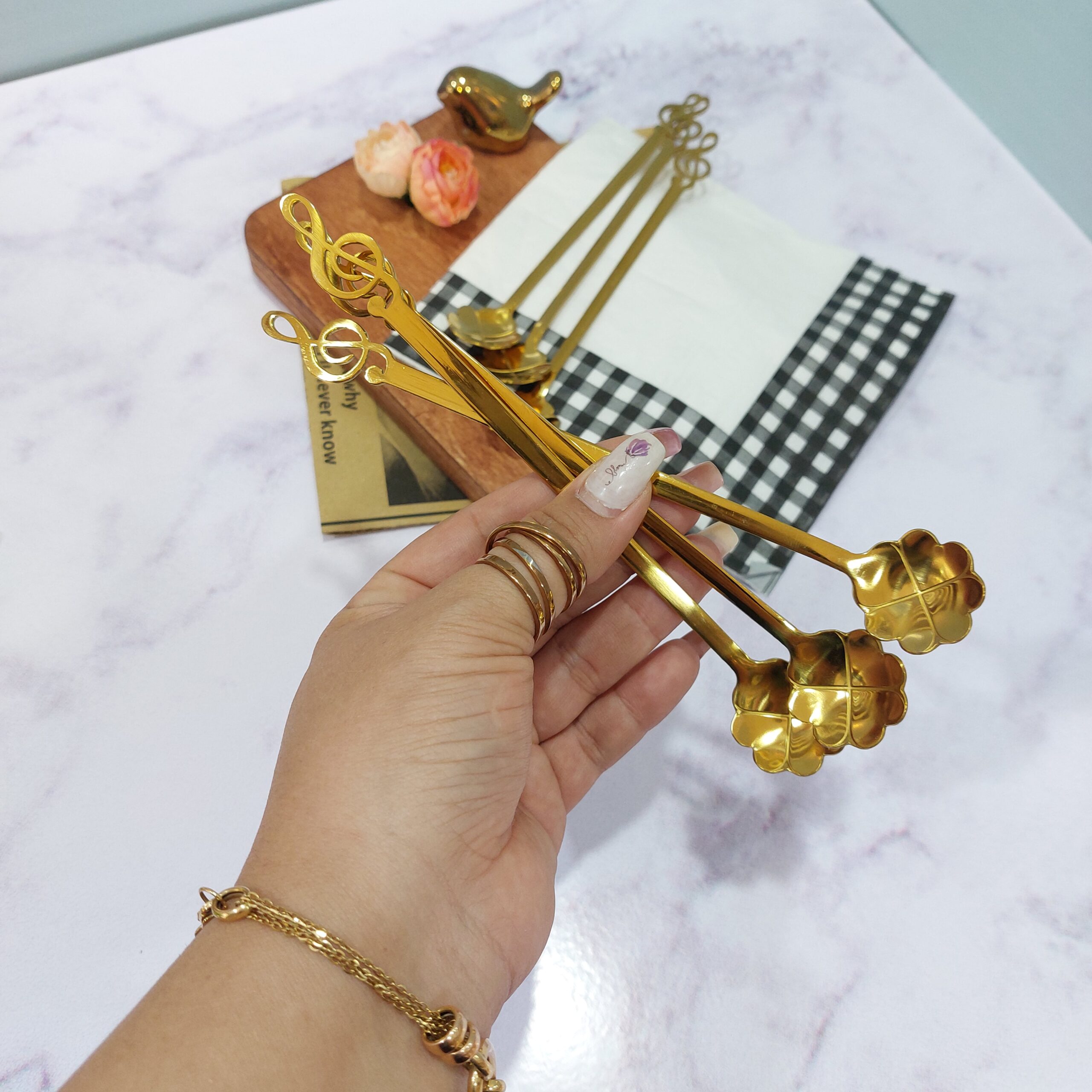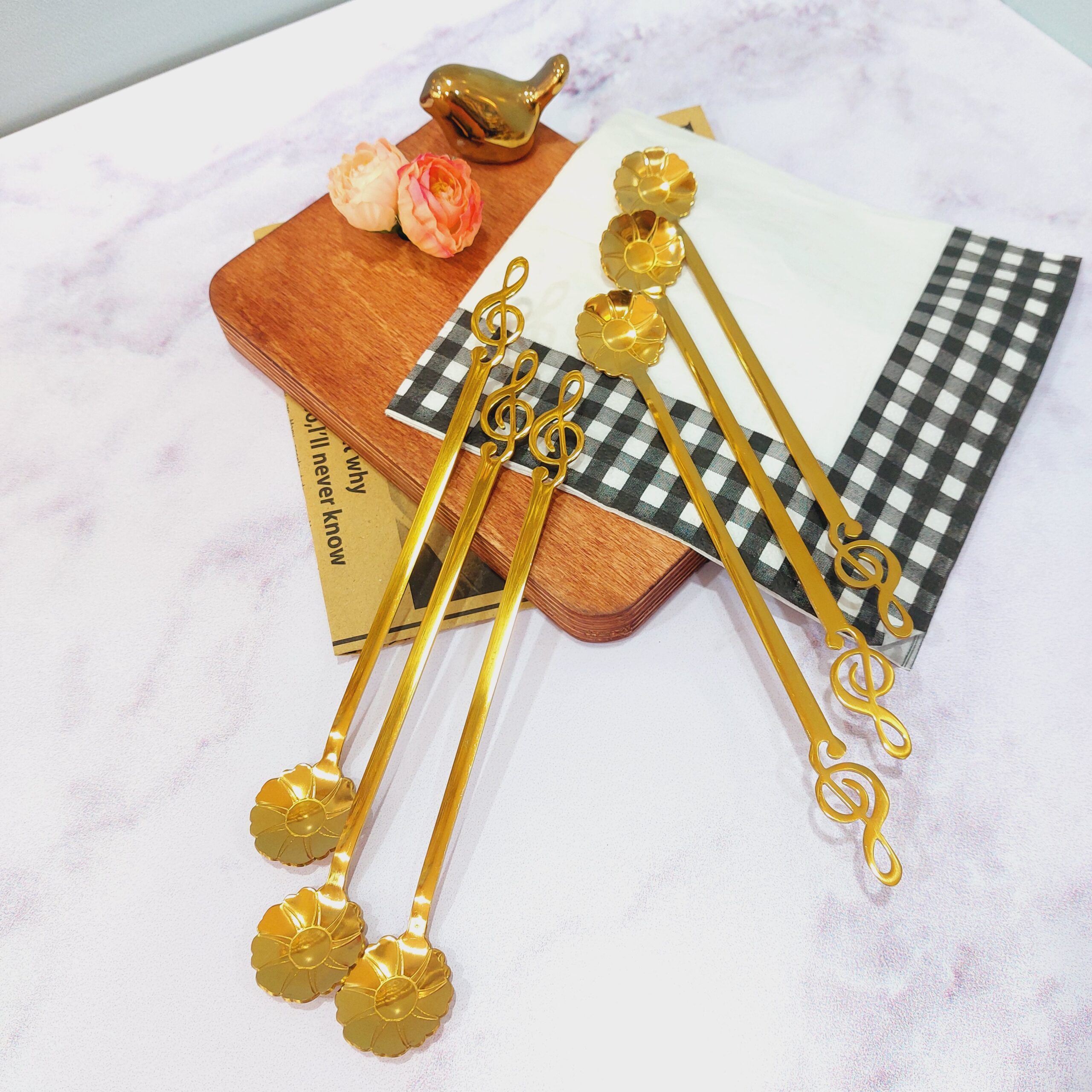 قاشق استیل بلند طرح گل و ملودی