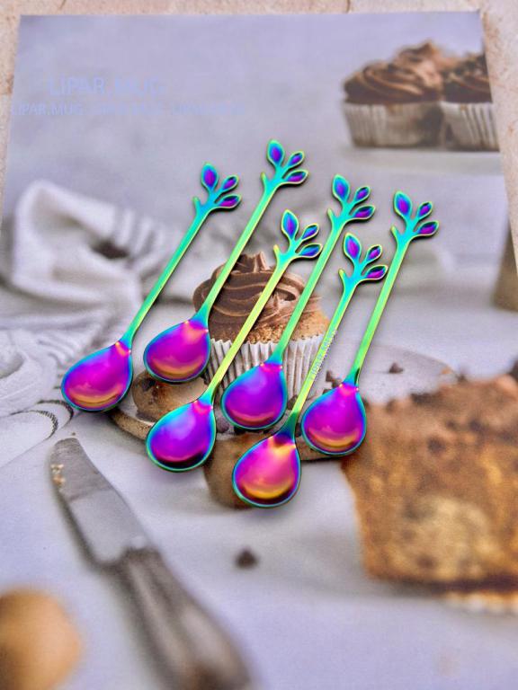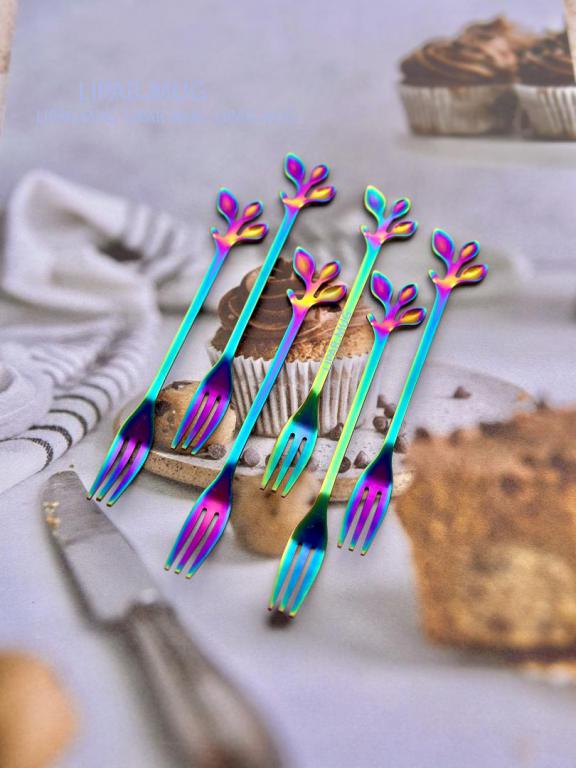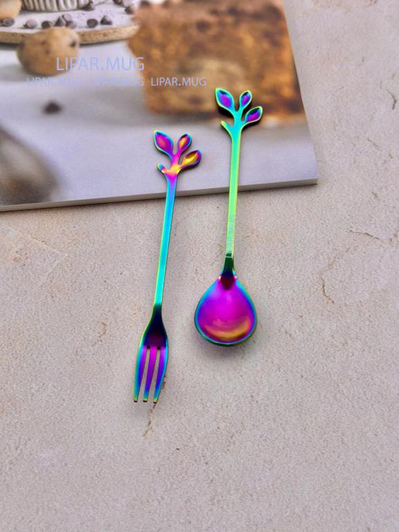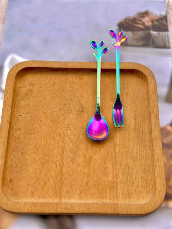 قاشق چنگال استیل دسر خوری فانتزی هفت رنگ هولوگرامی کد 3008