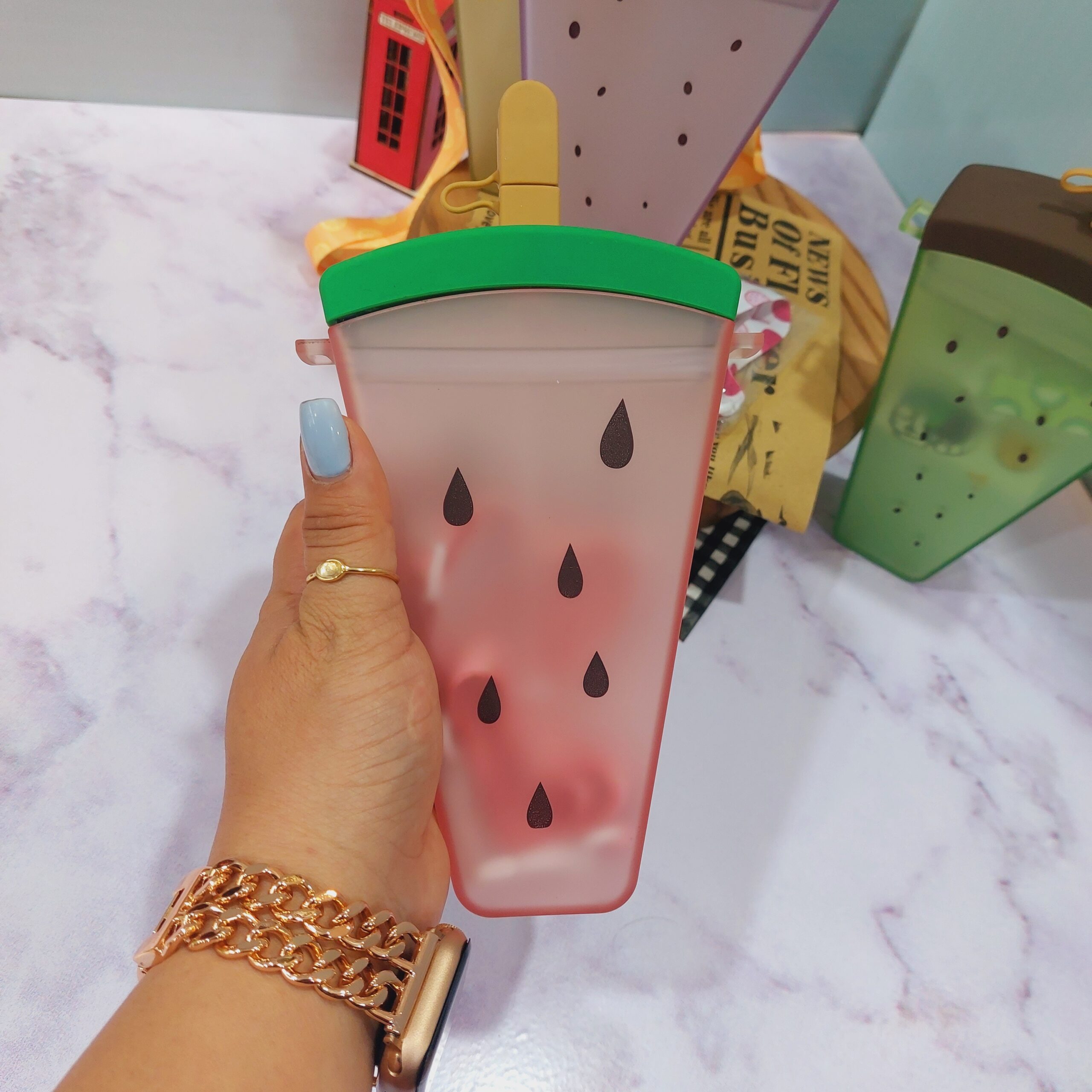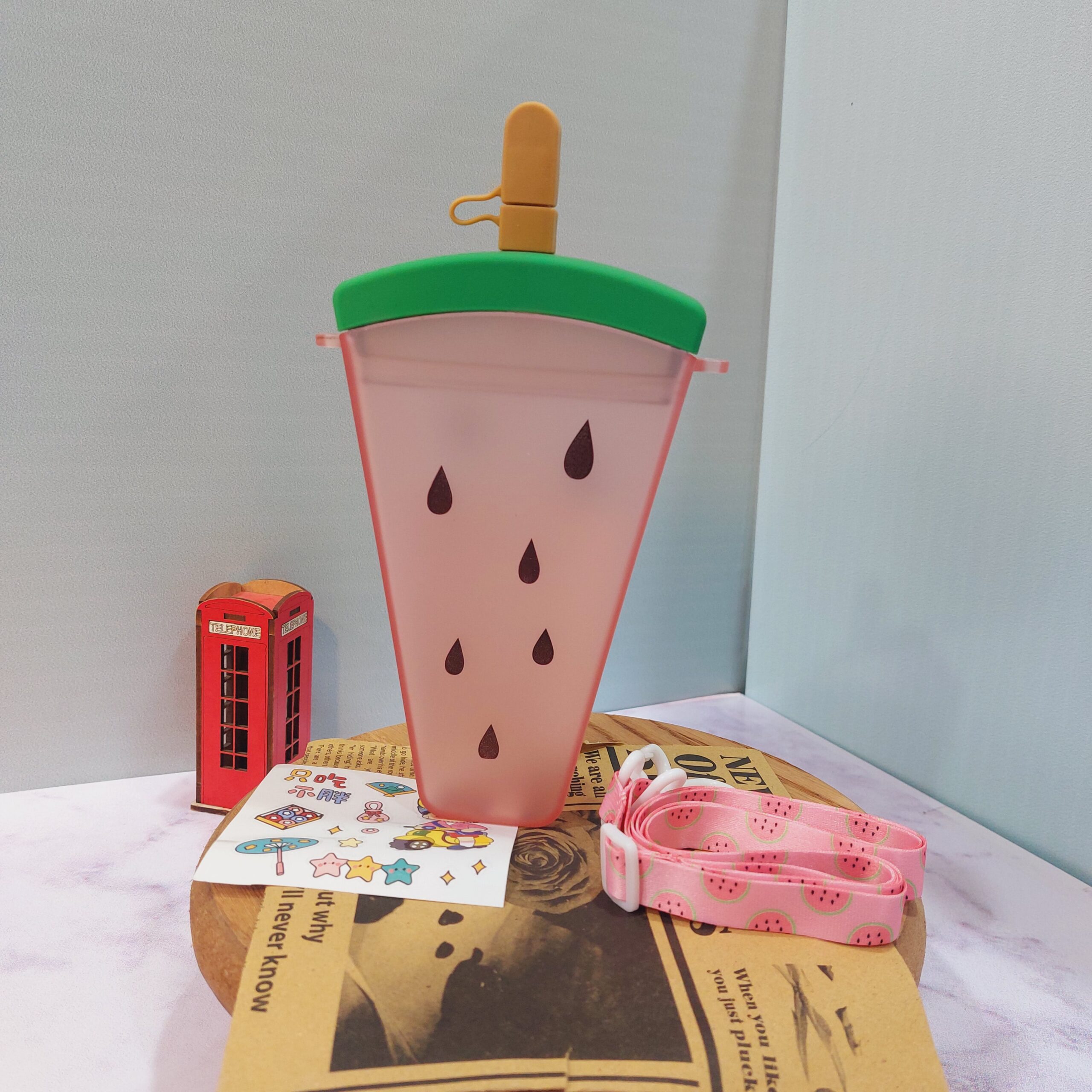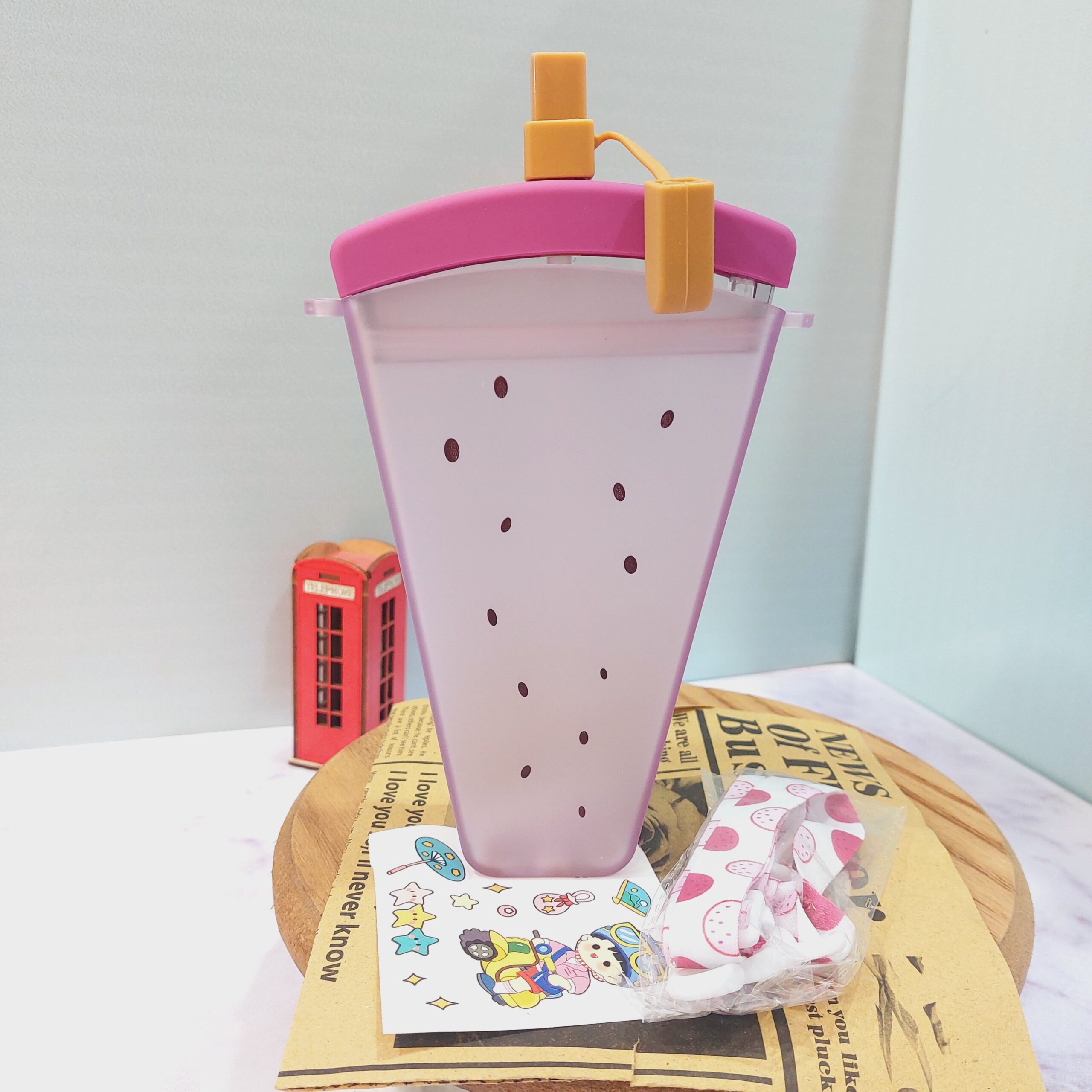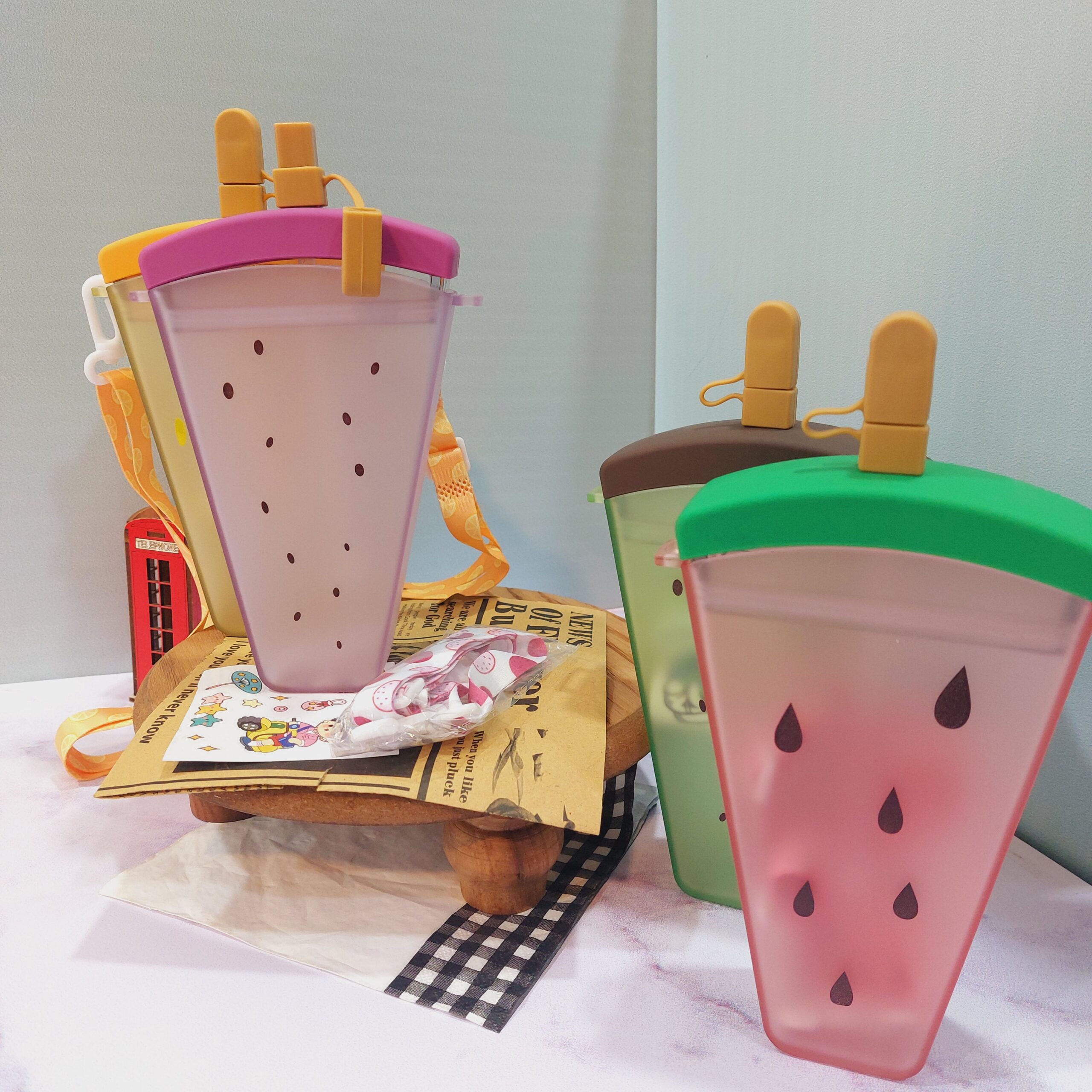 - قمقمه فانتزی نی دار طرح بستنی میوه ای