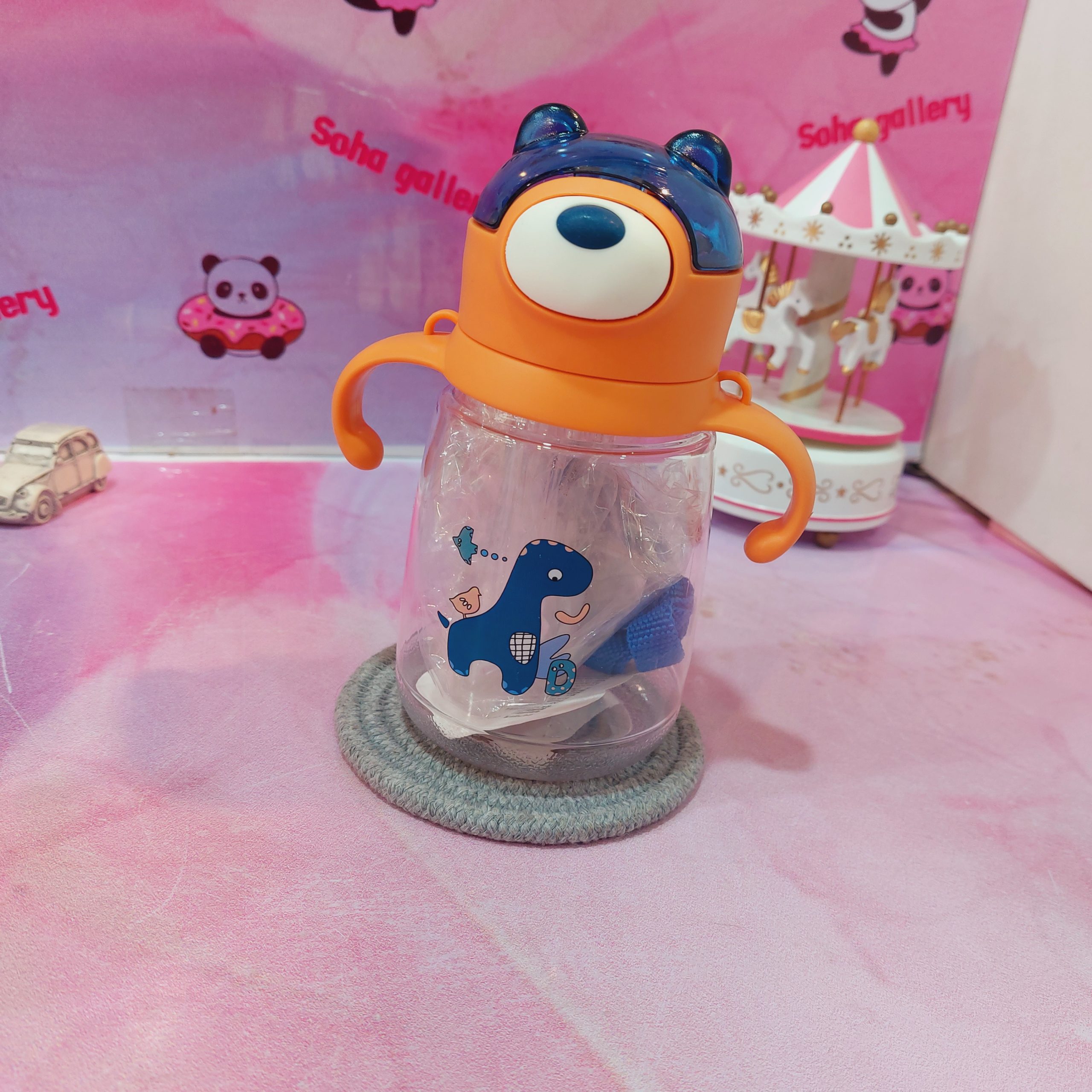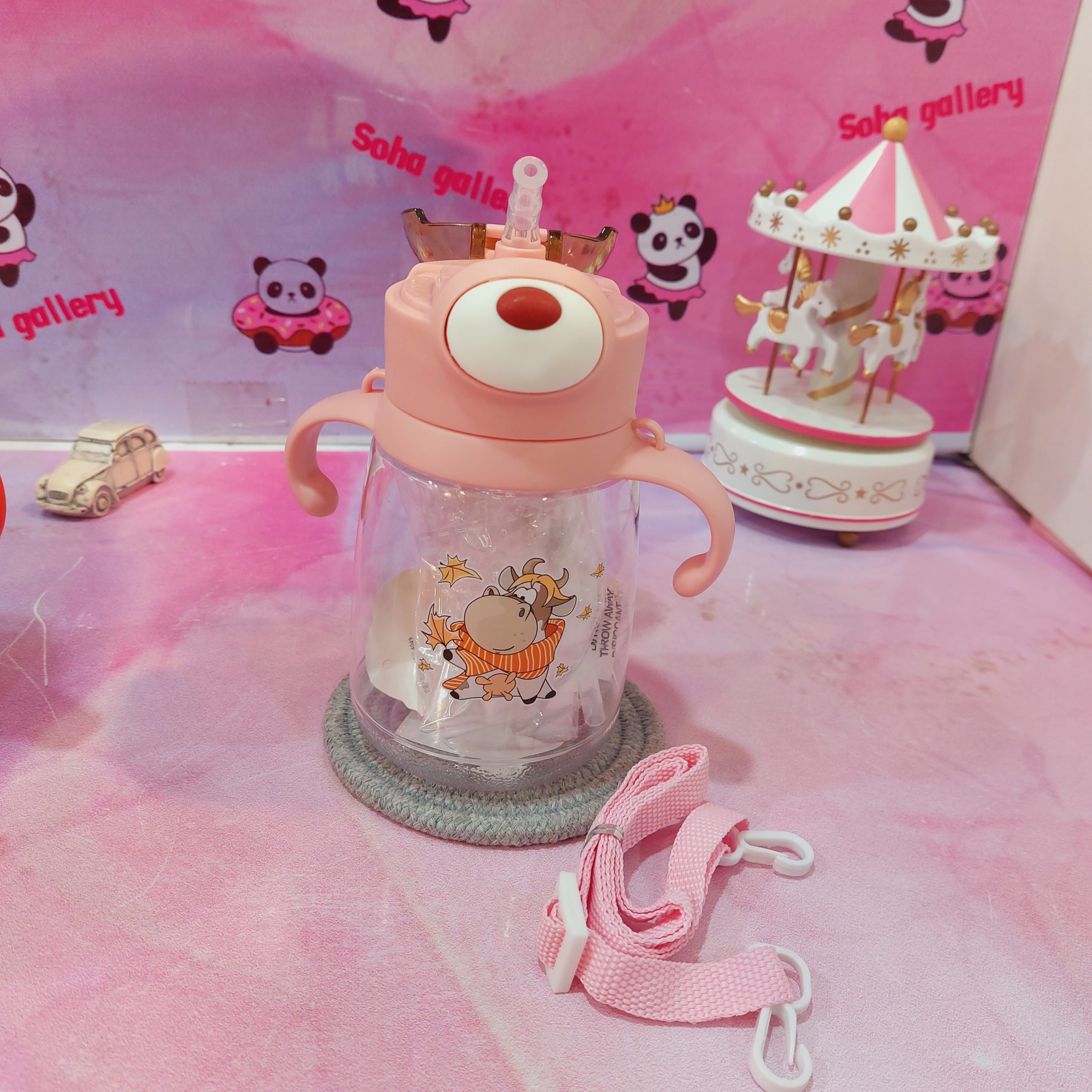درب قفلی دارای دسته دوطرفه جهت حمل اسان کودک در حال نوشیدن