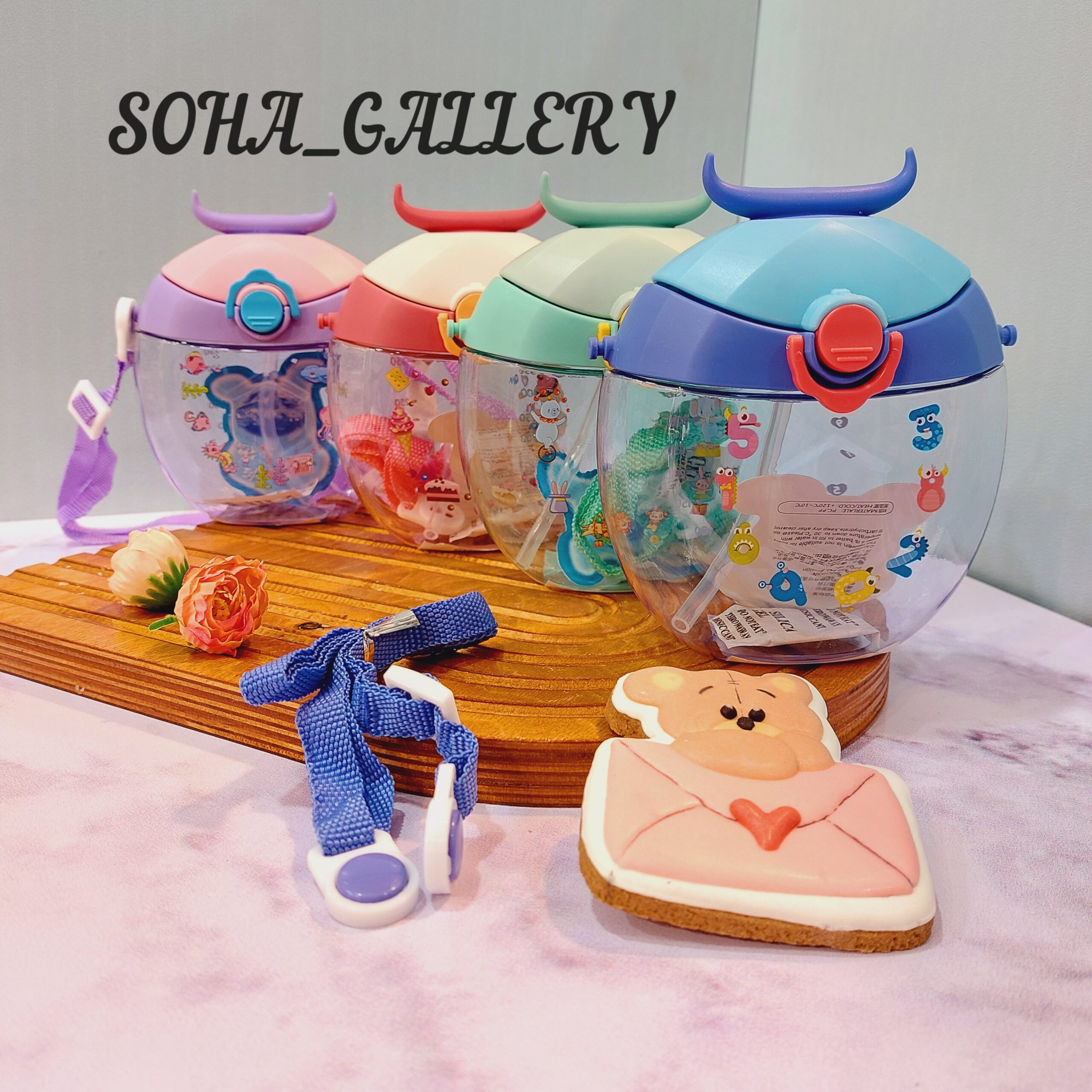 قمقمه شاخ دار گرد فانتزی نی دار سبک قابل حمل راحت