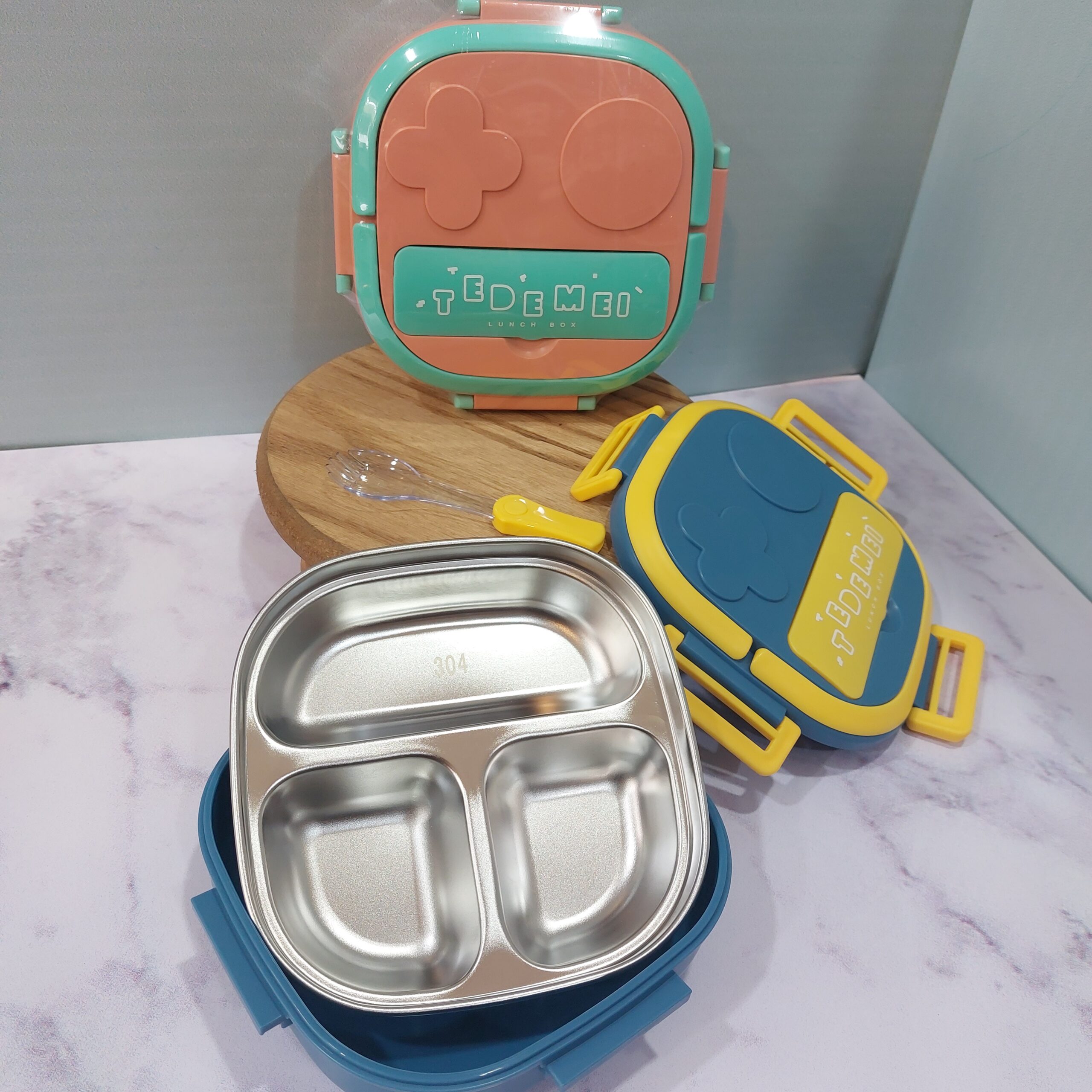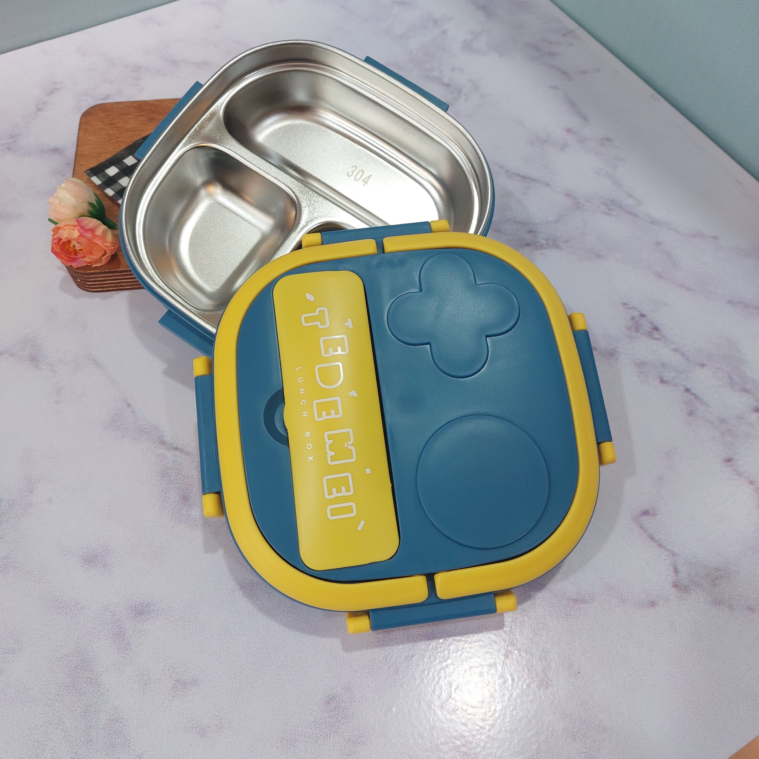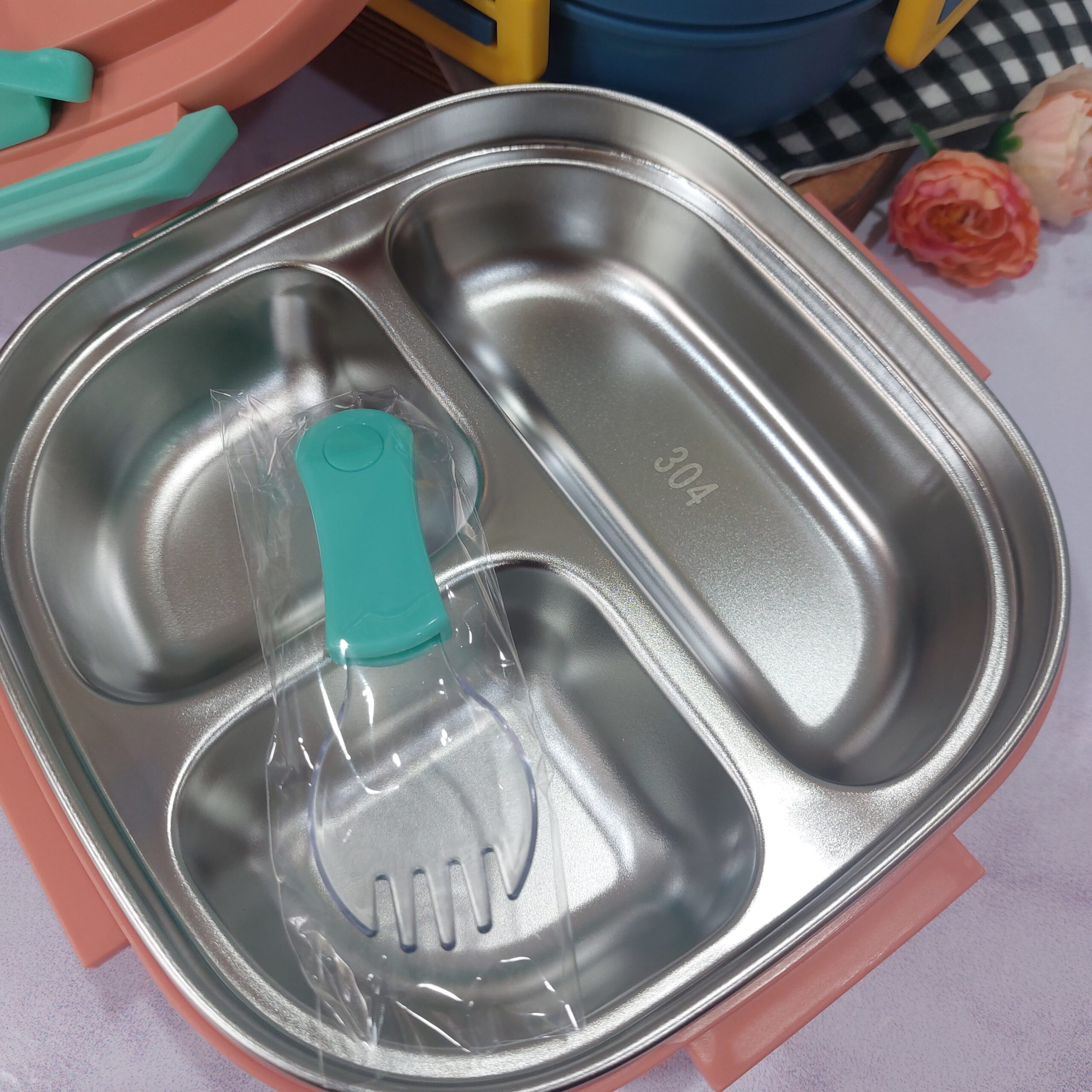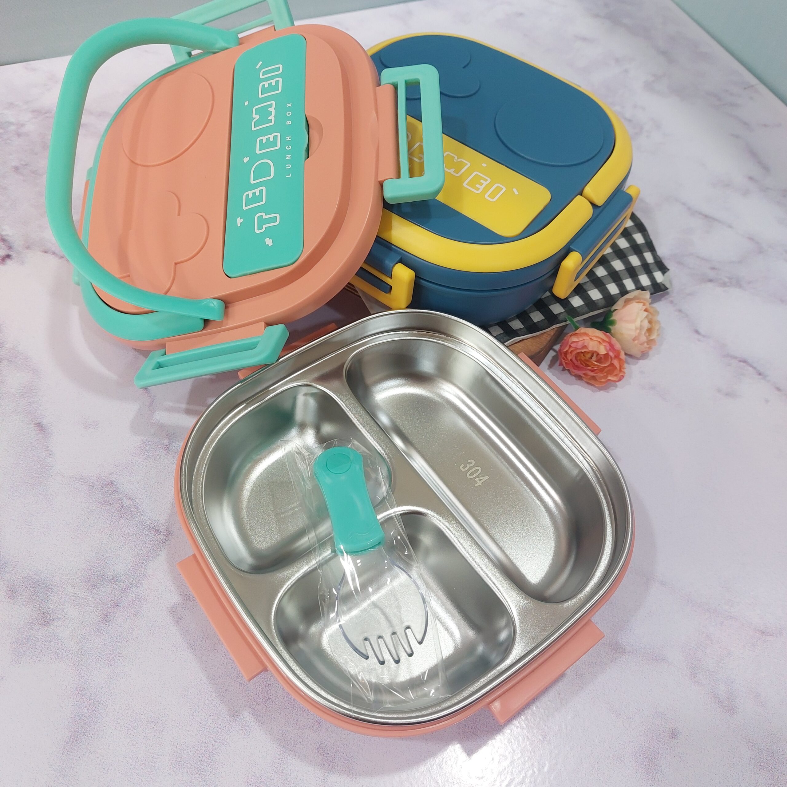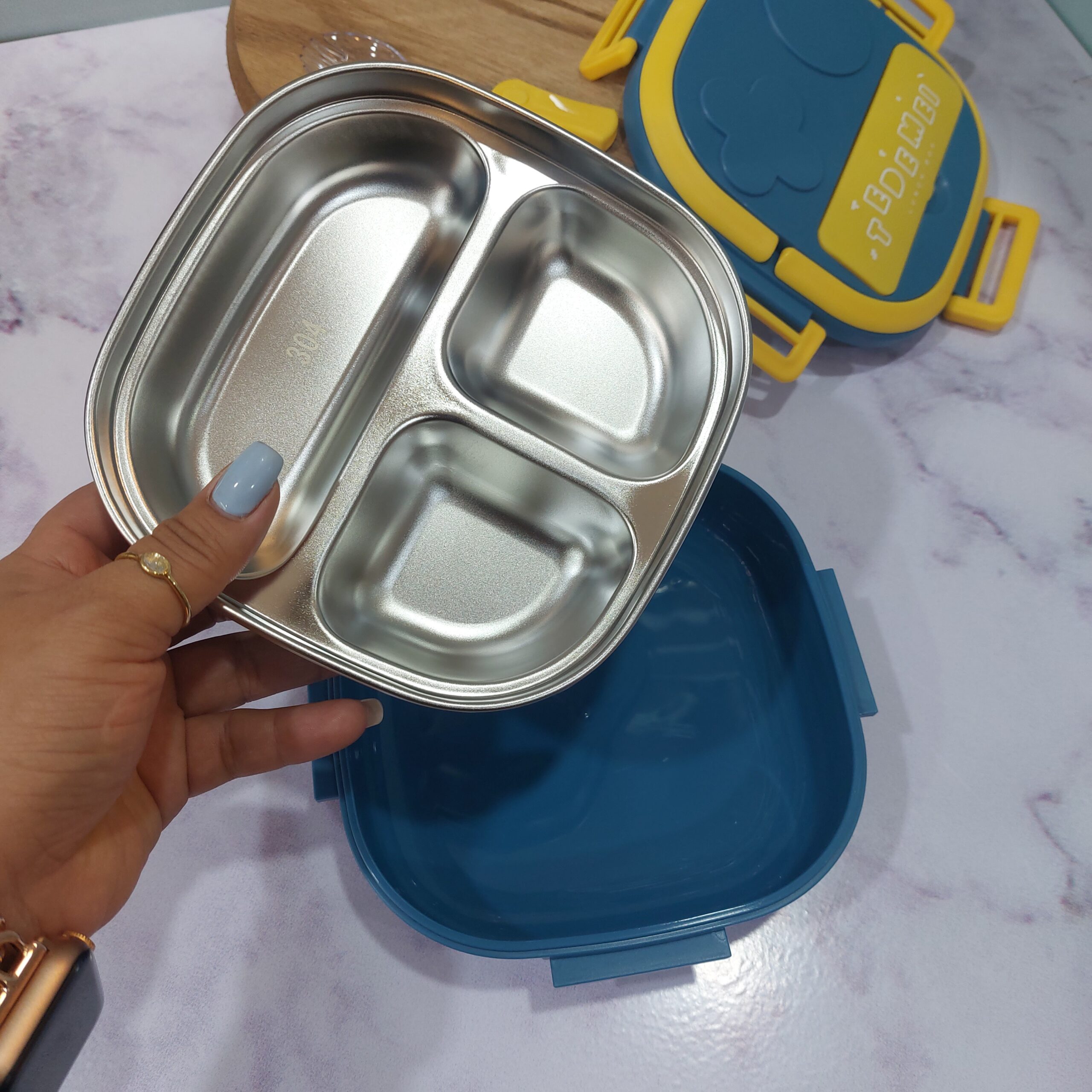 - لانچ باکس مربع استیل سه خونه