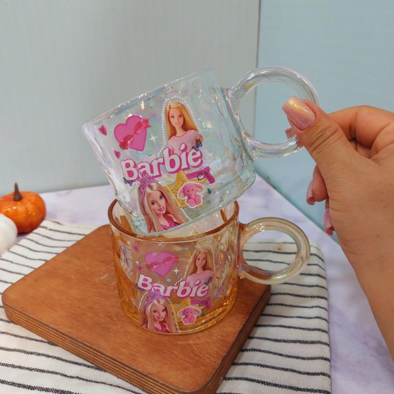 ماگ بلوری هفت رنگ با چاپ طرح ثابت باربی