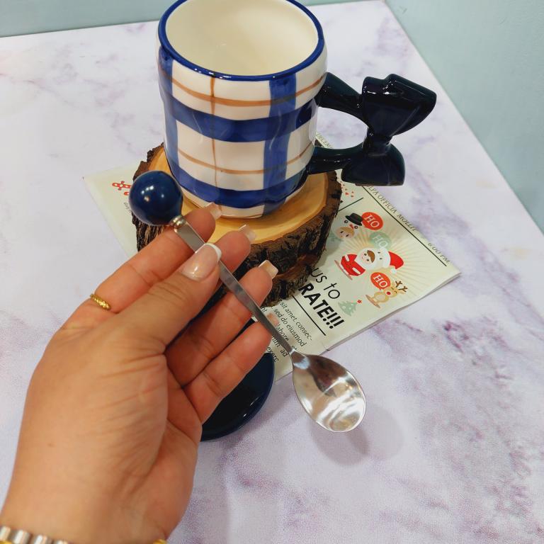 دارای دسته پاپیونی زیبا + قاشق استیل دسته توپی+در سرامیکی