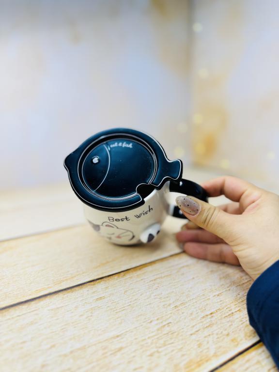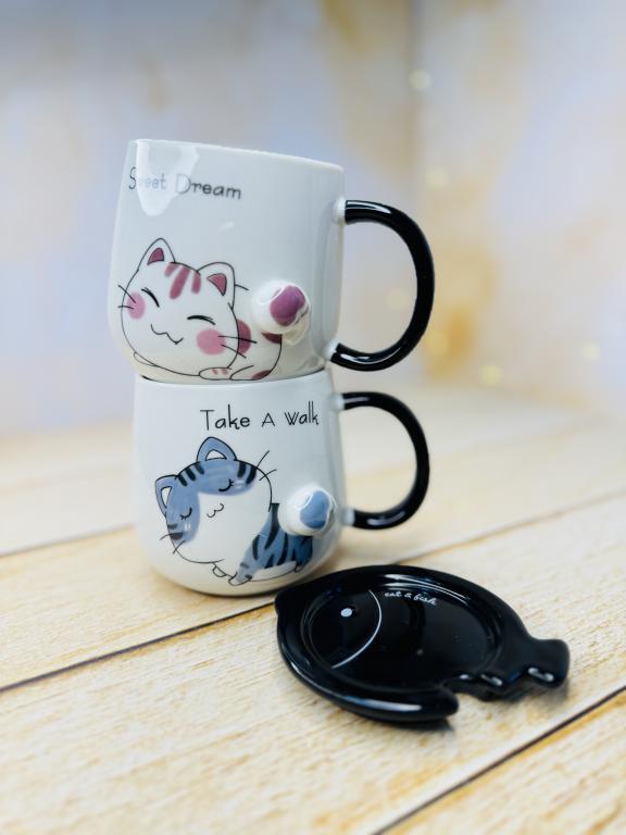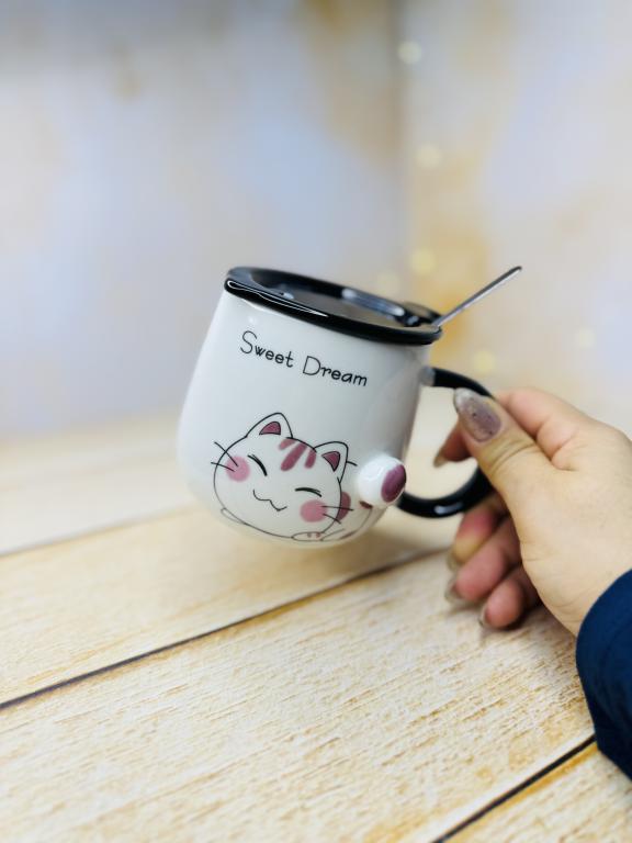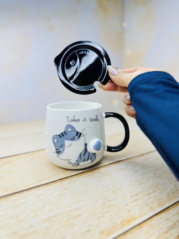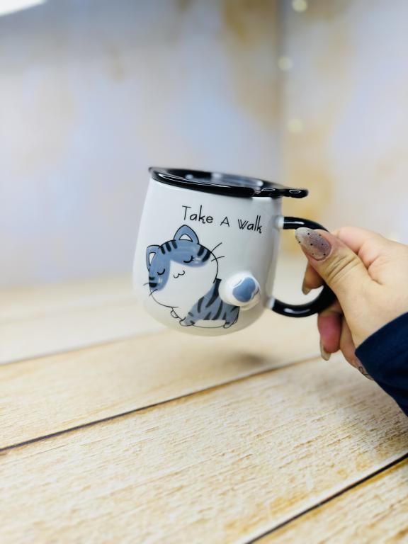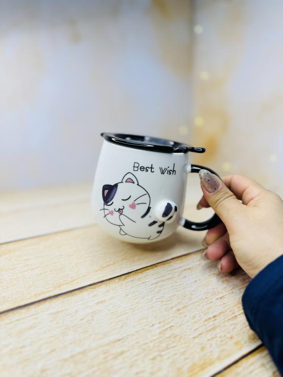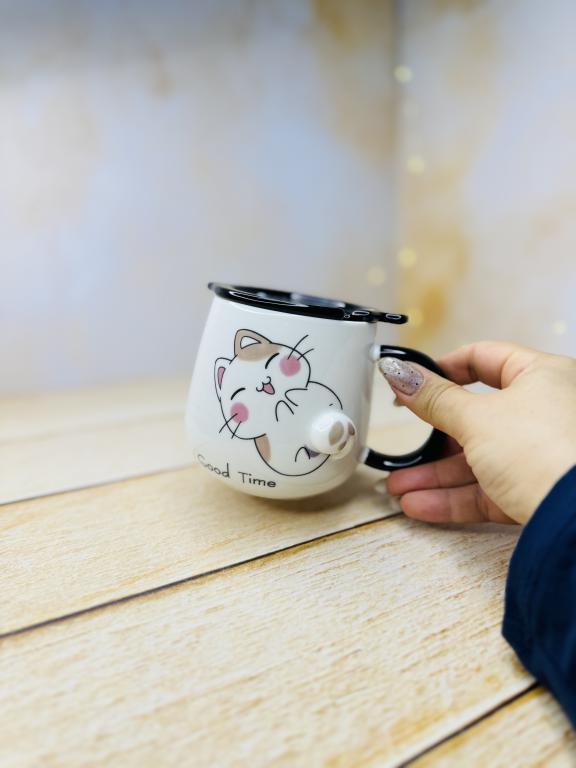 ماگ درب فانتزی سرامیکی طرح گربه دم برجسته کد 2959