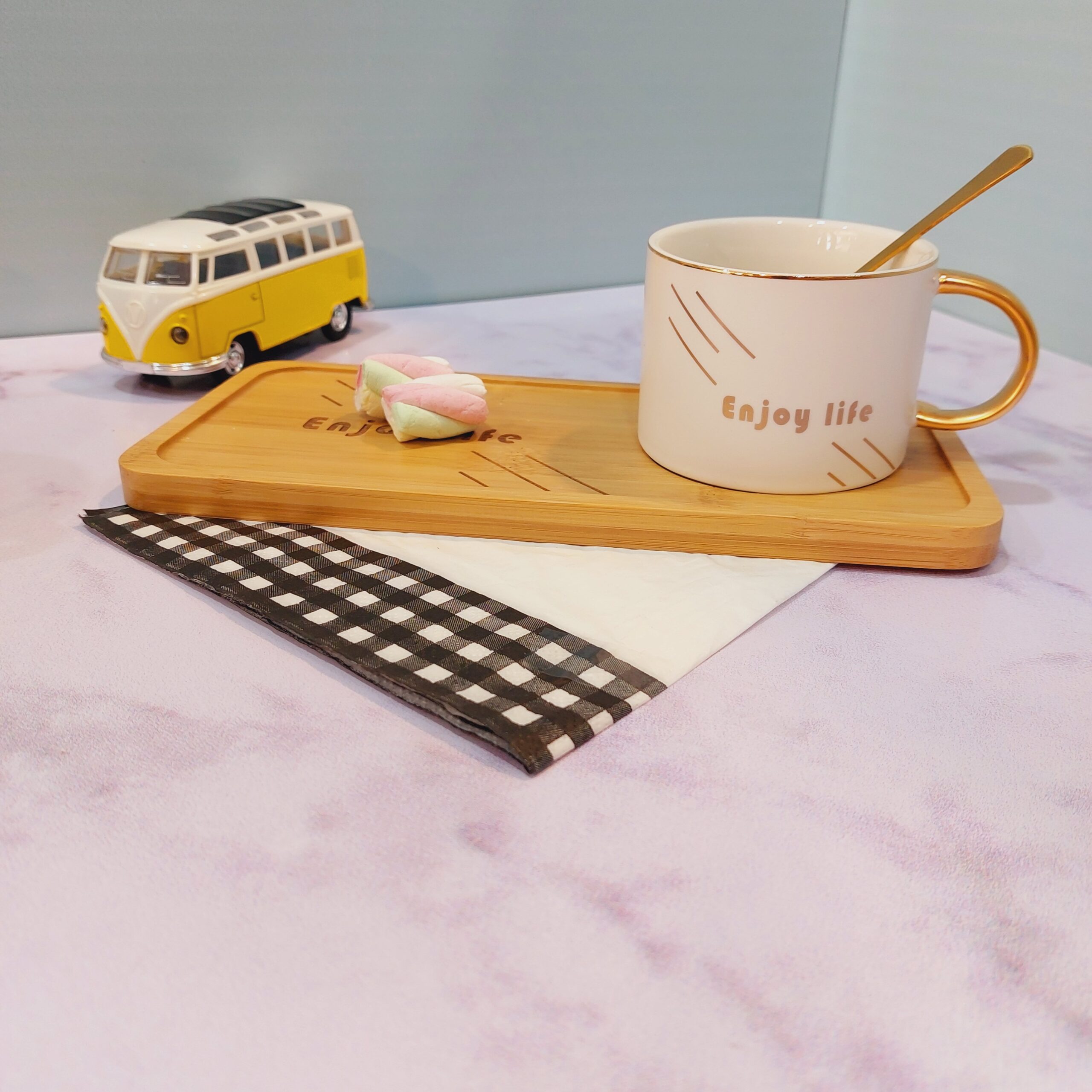 دارای قاشق و سینی چوبی