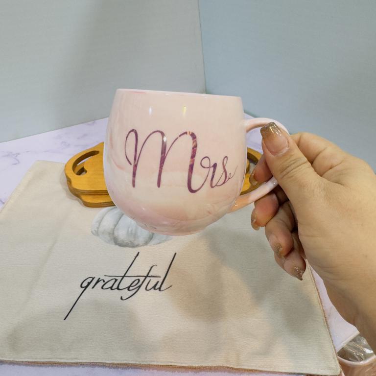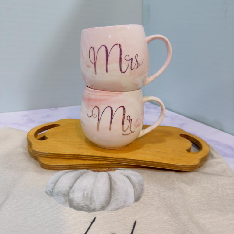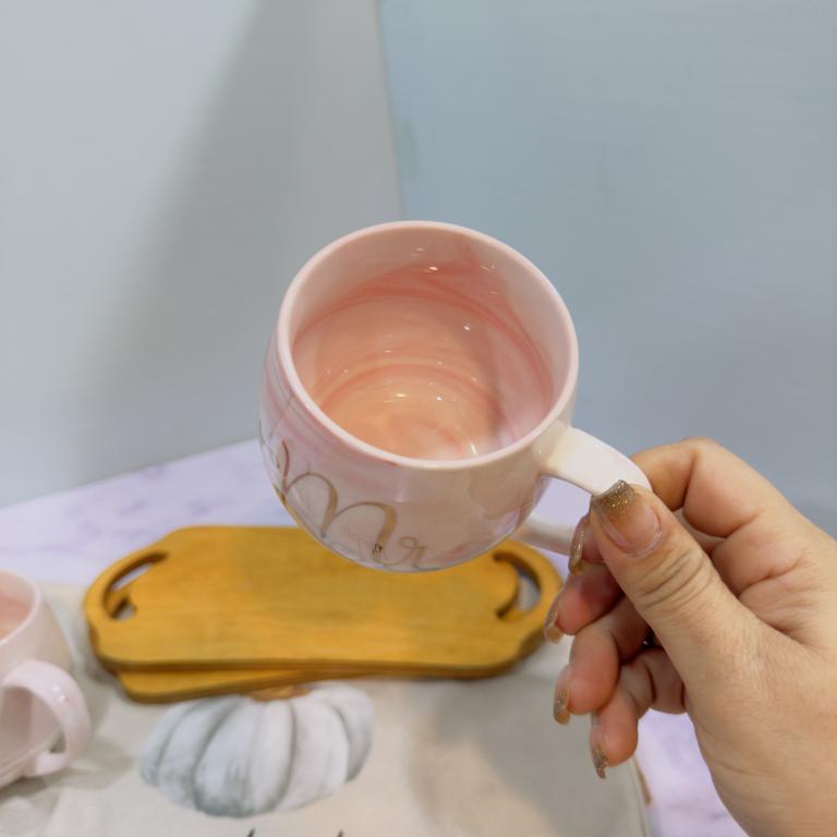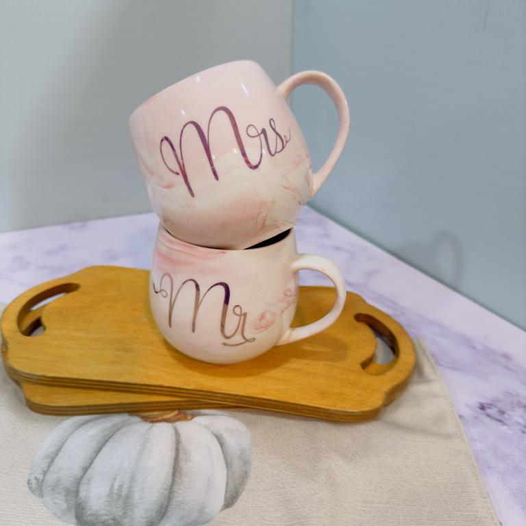 ماگ ست خانم اقا فنجونی صورتی ماربل کد 2035