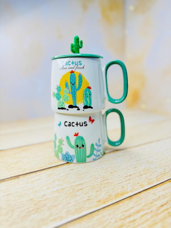 ماگ سرامیکی درب برجسته کاکتوس دسته سبز کد 2960