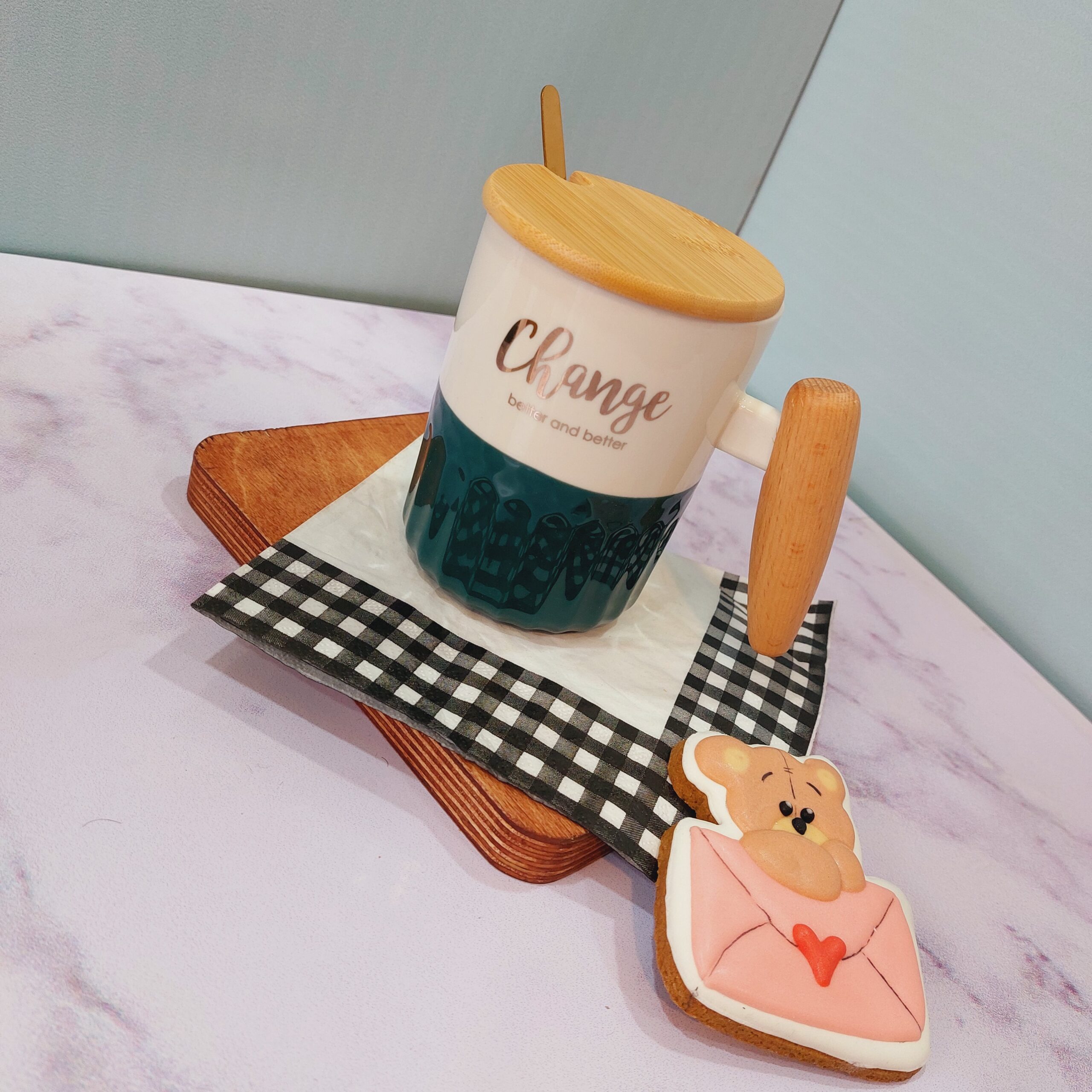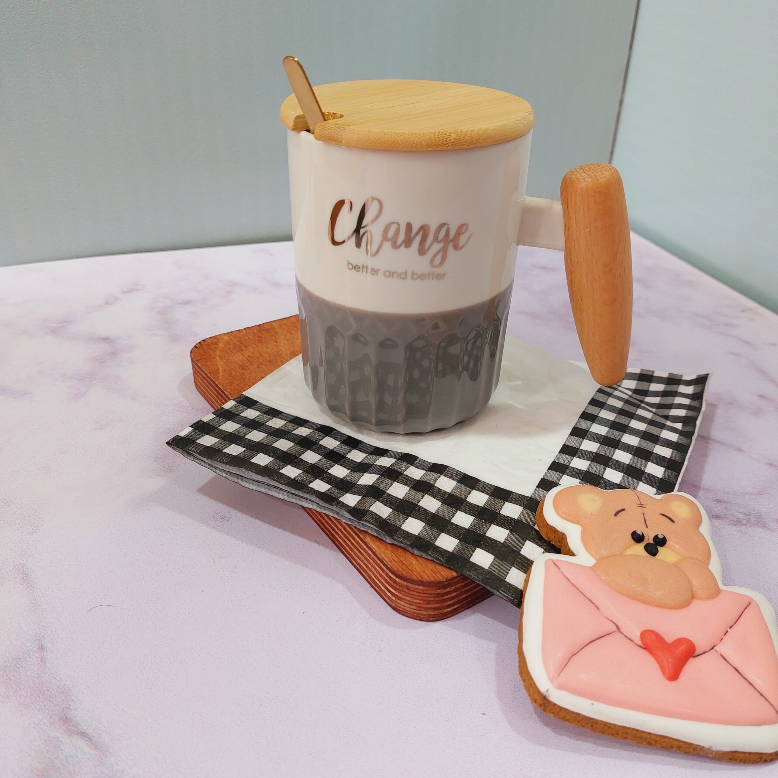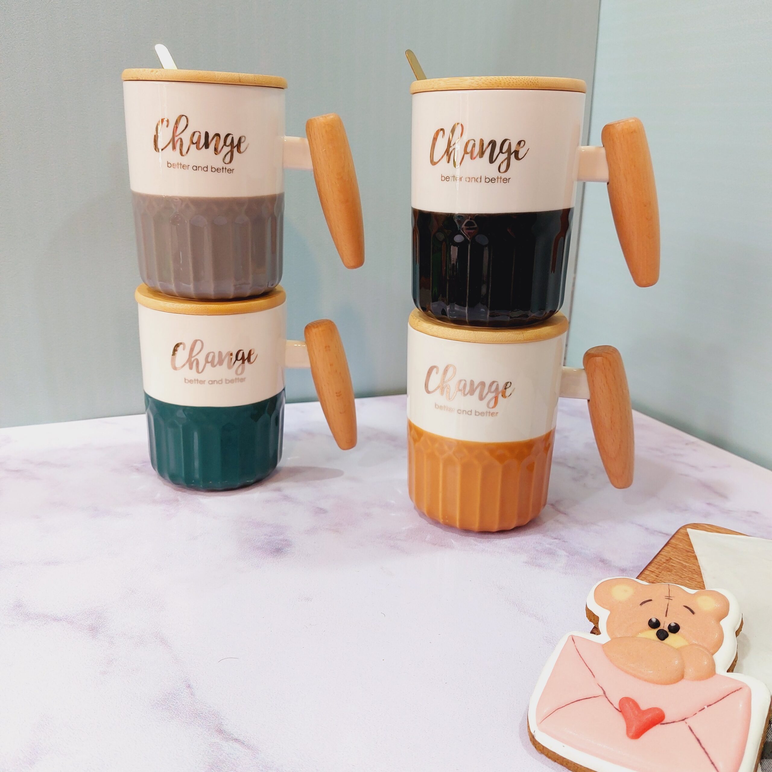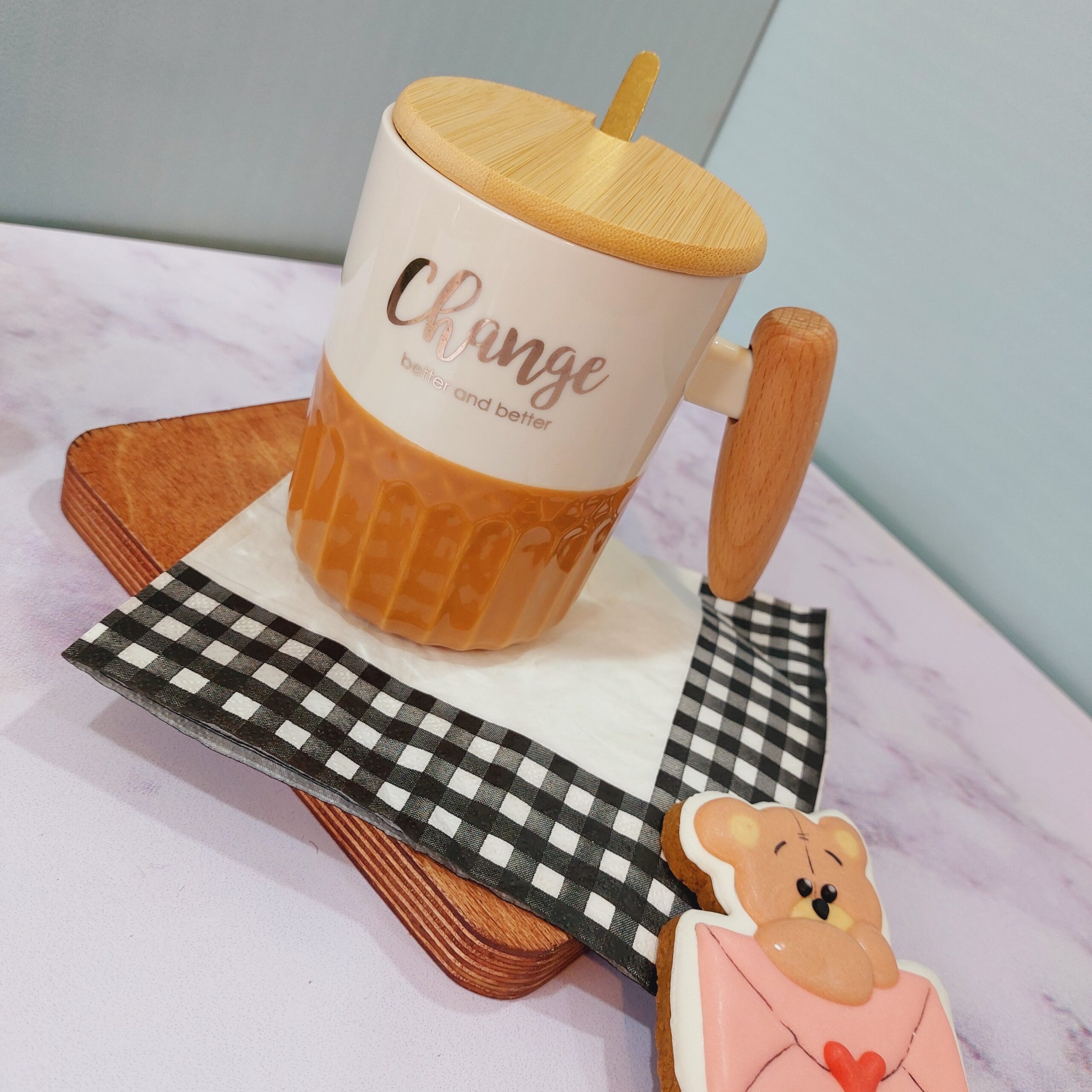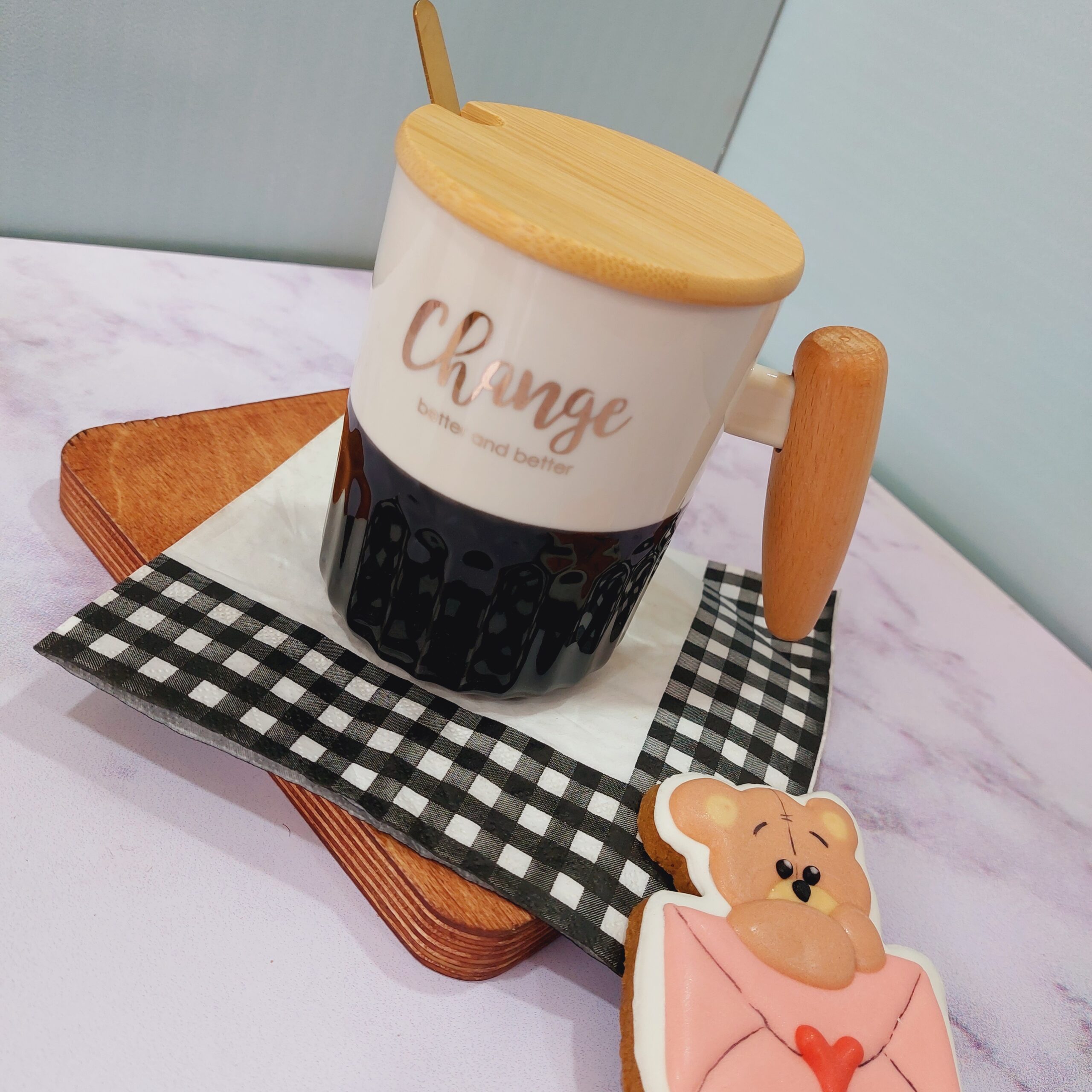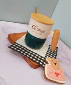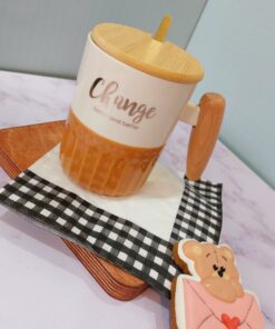 - ماگ سرامیکی دسته چوبی