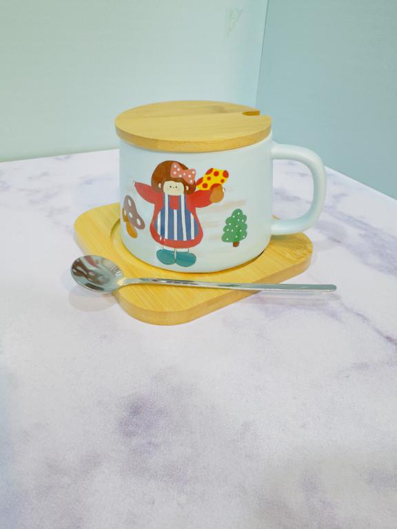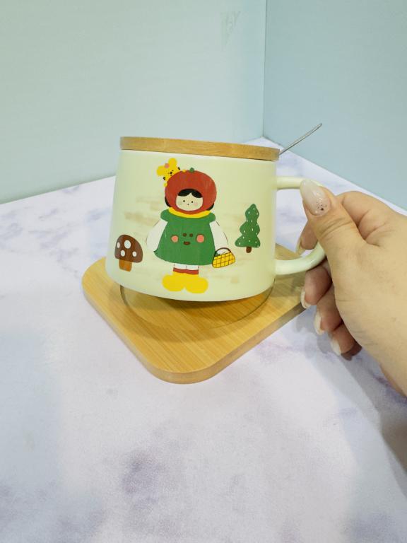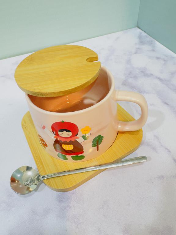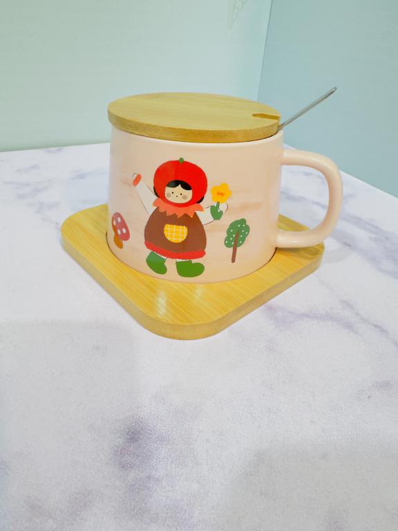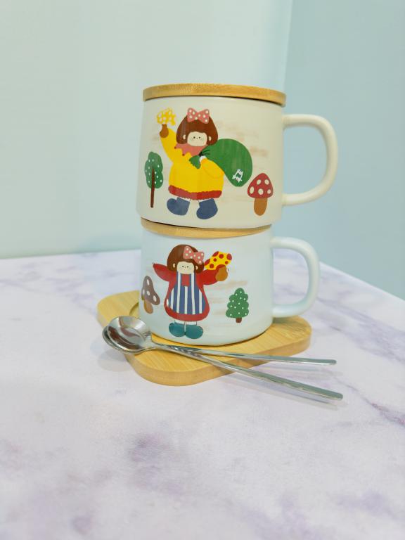 هر ست شامل یک ماگ دارای قاشق و سینی چوبی است