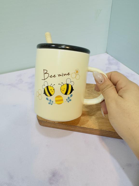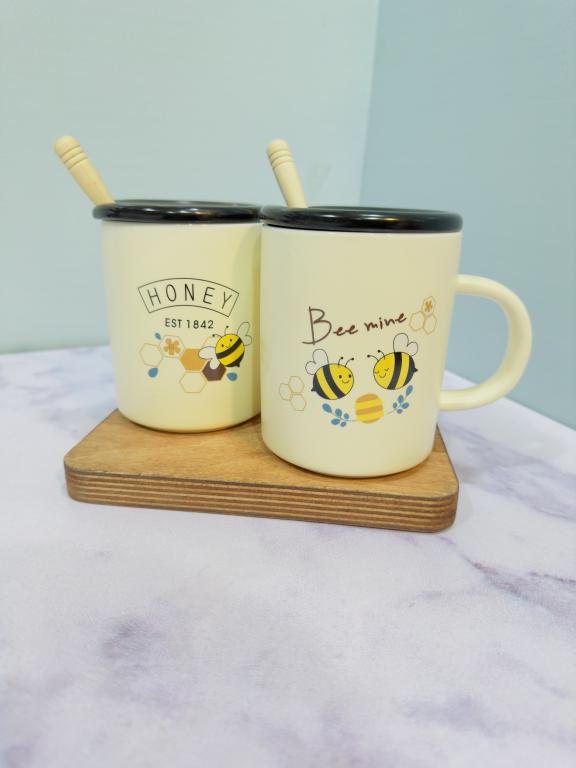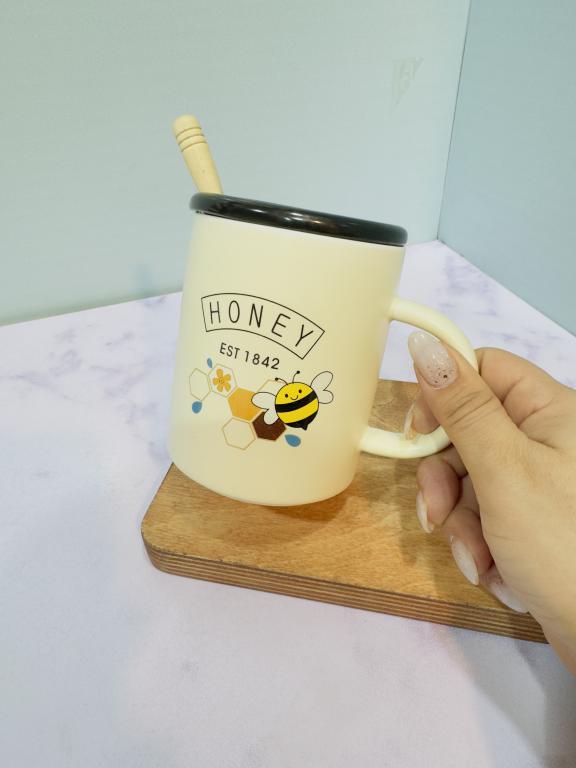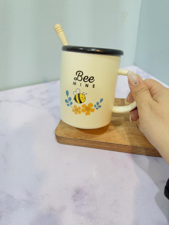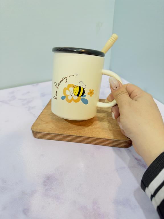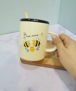ماگ فانتزی طرح زنبور قاشق چوبی کد 2203