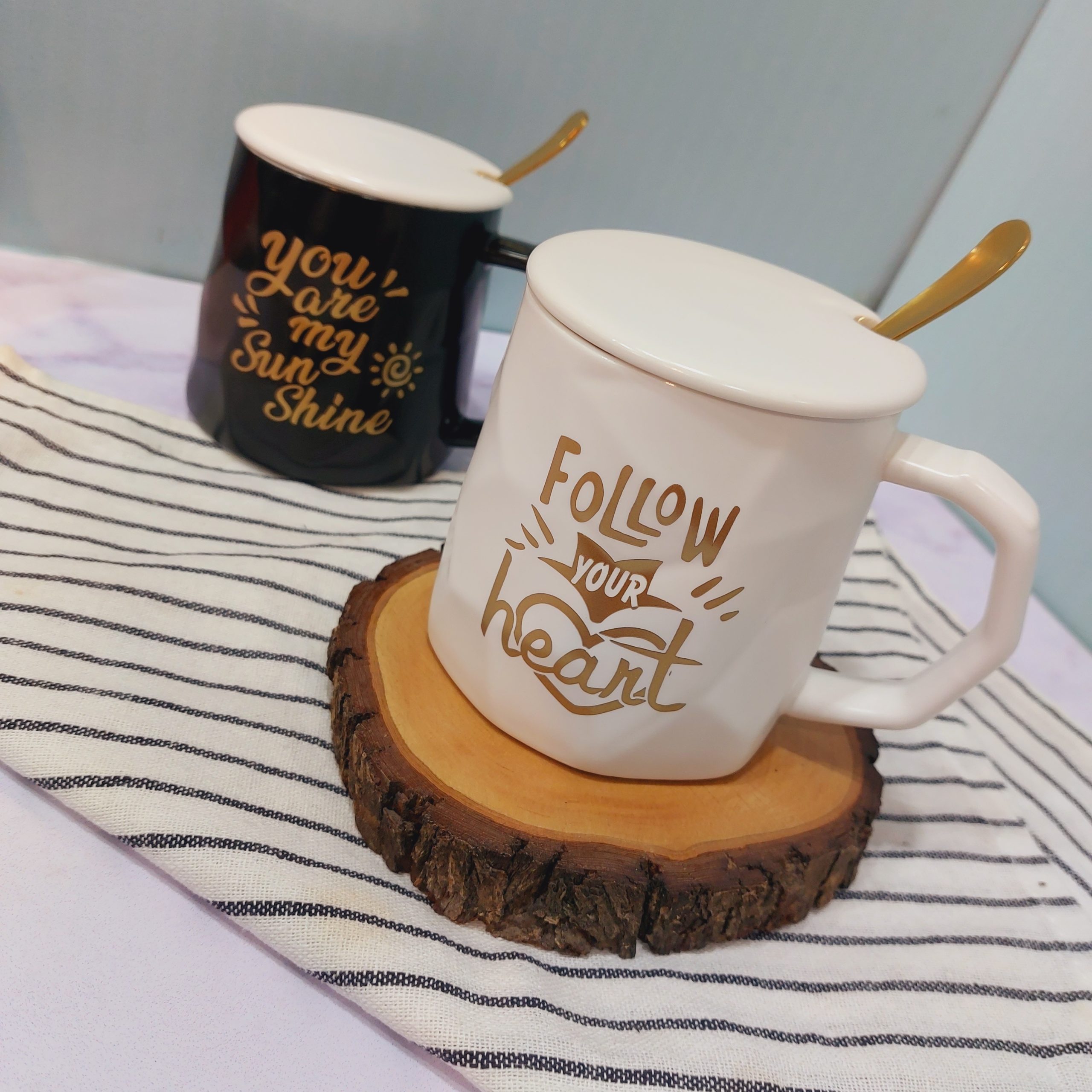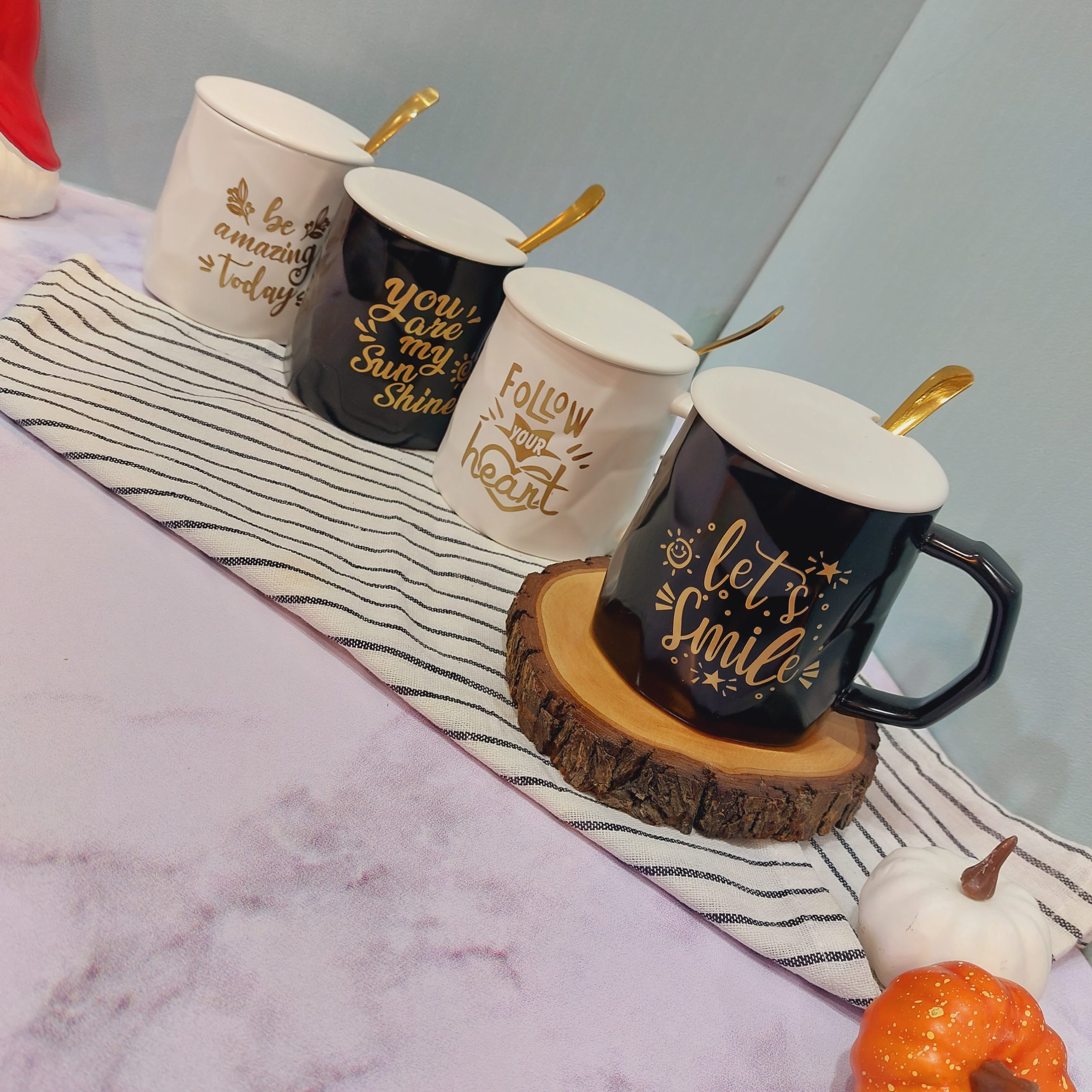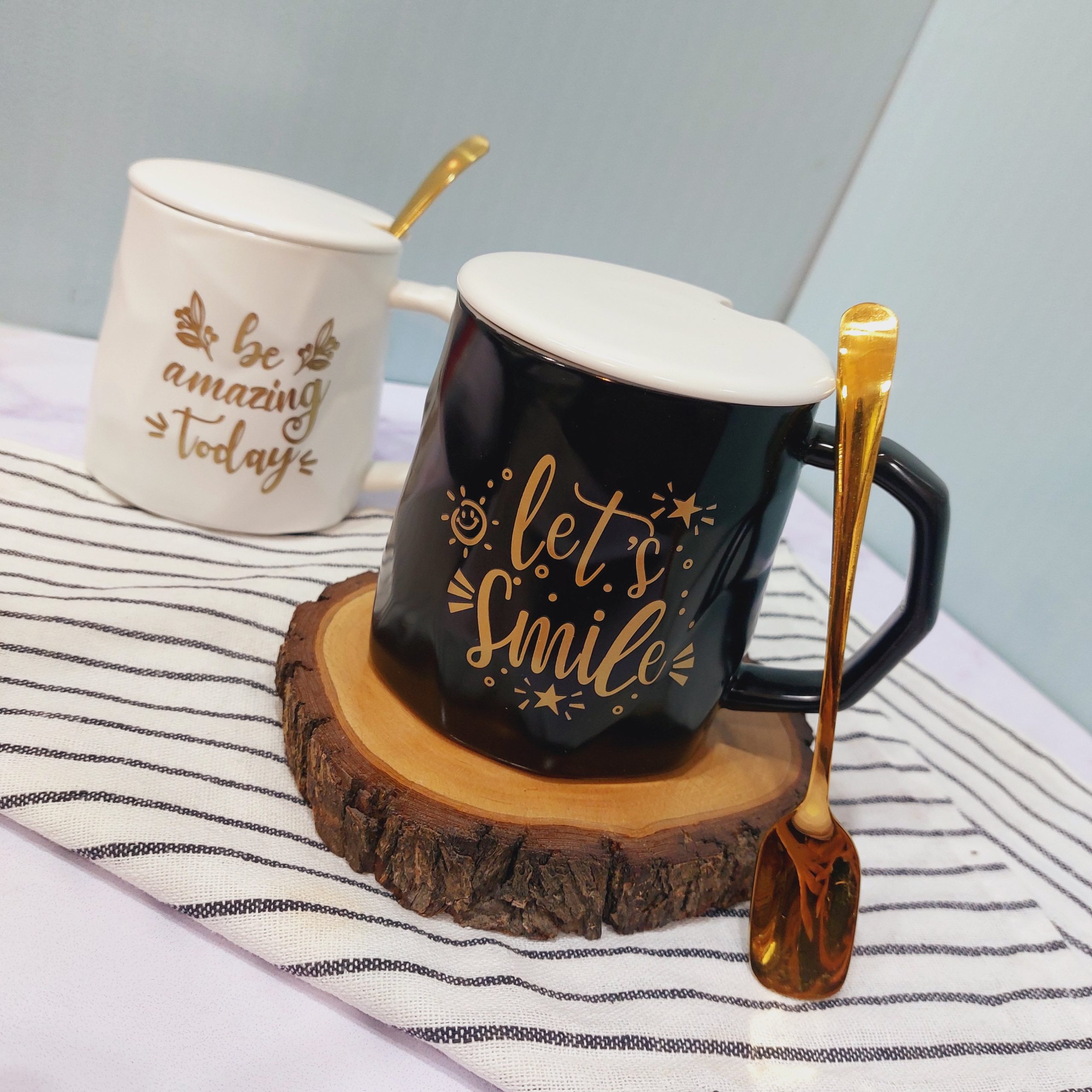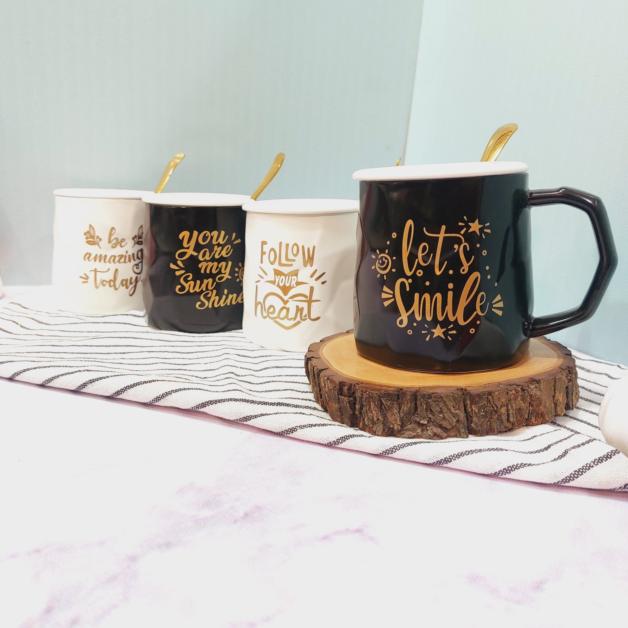 ماگ فونت دار سفید و مشکی قاشق دار