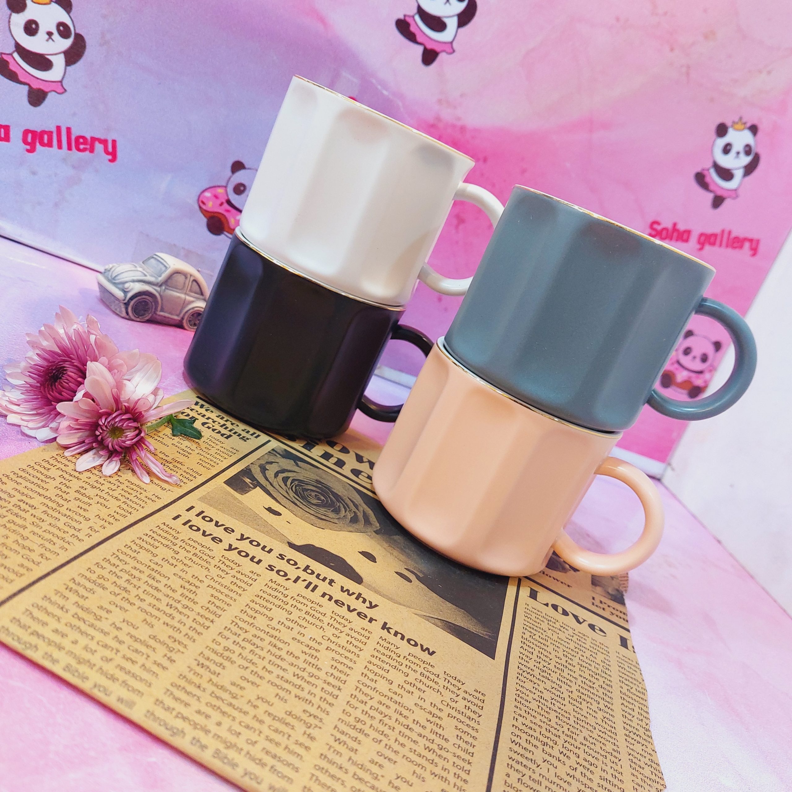 رنگبندی زیبا طرح برجسته لبه ماگ طلایی