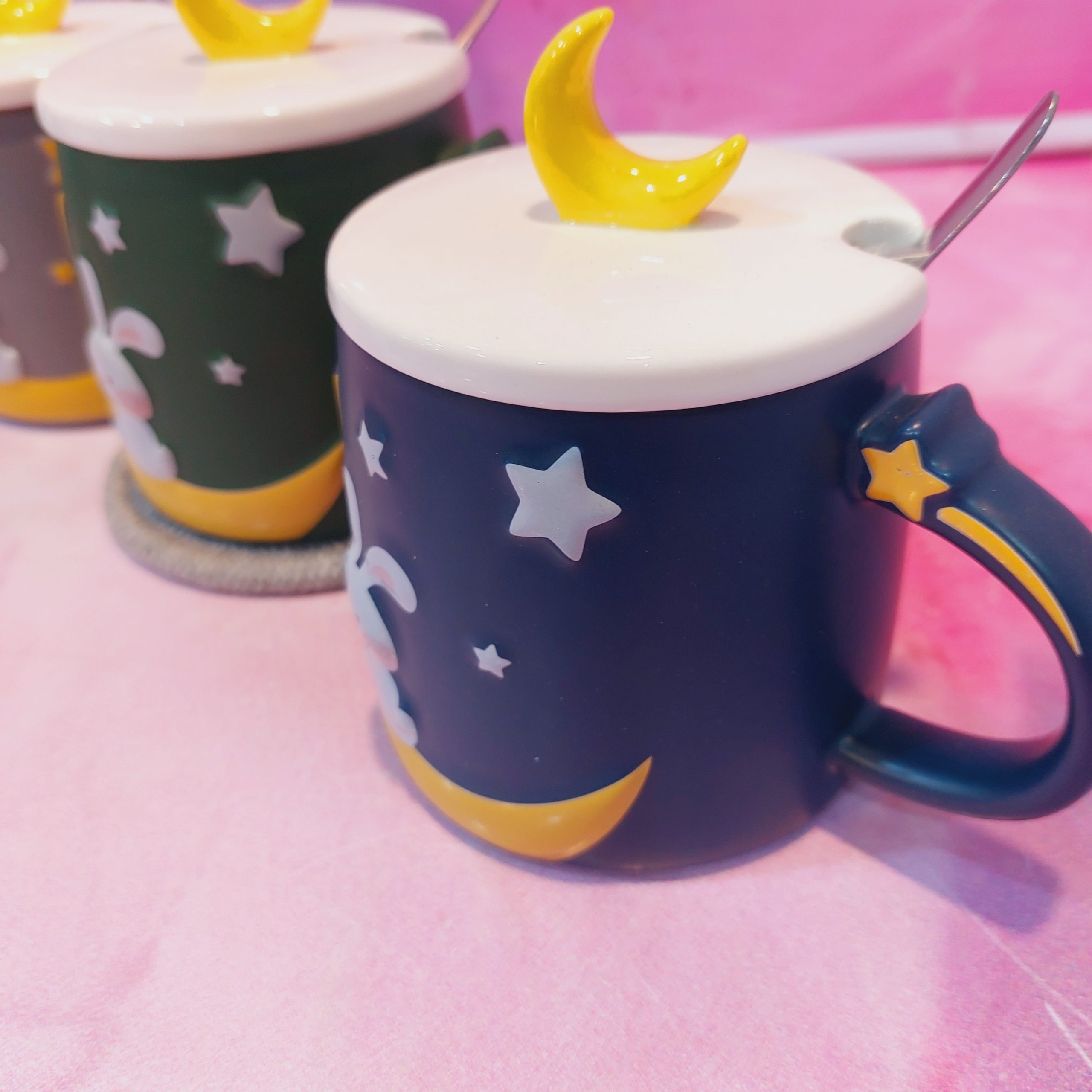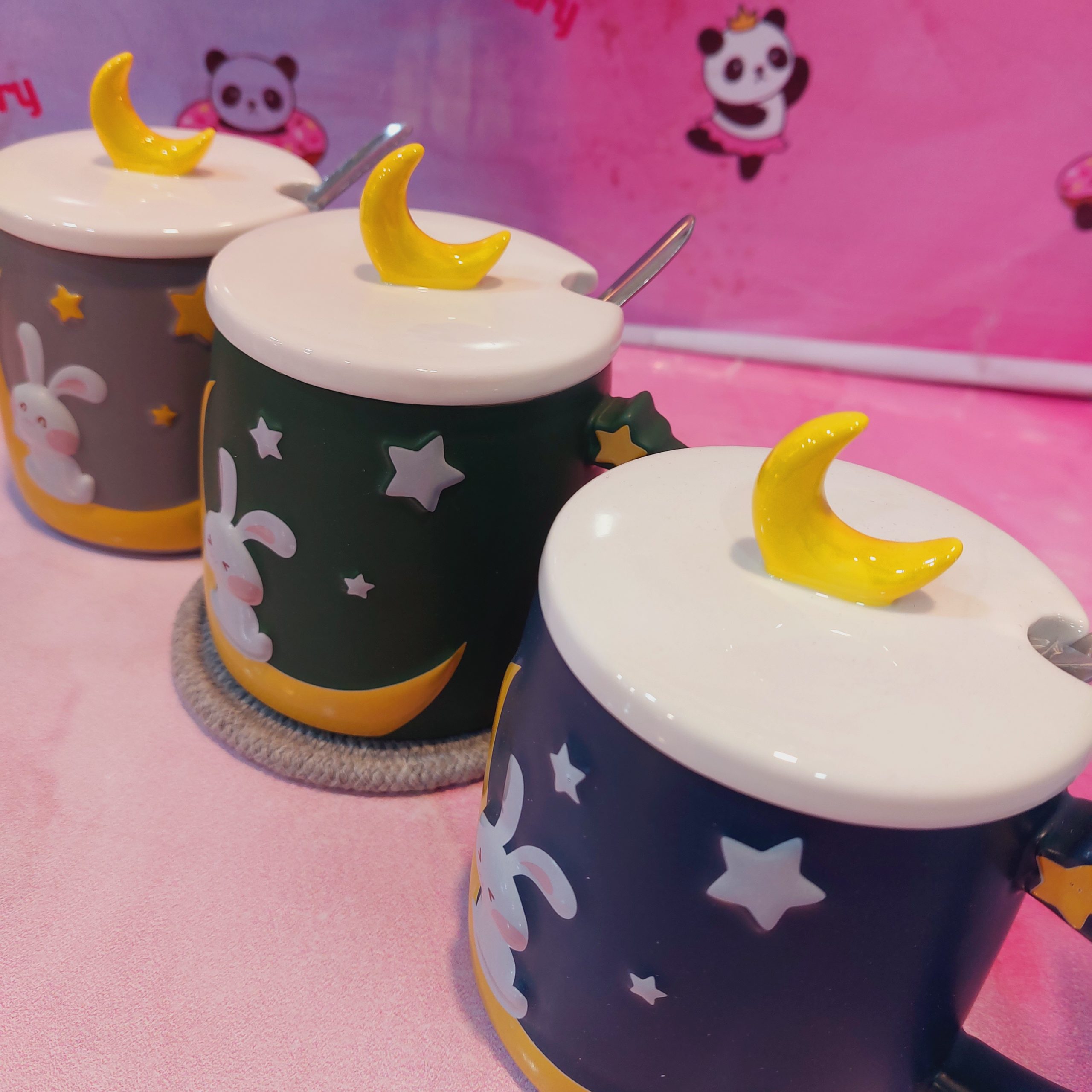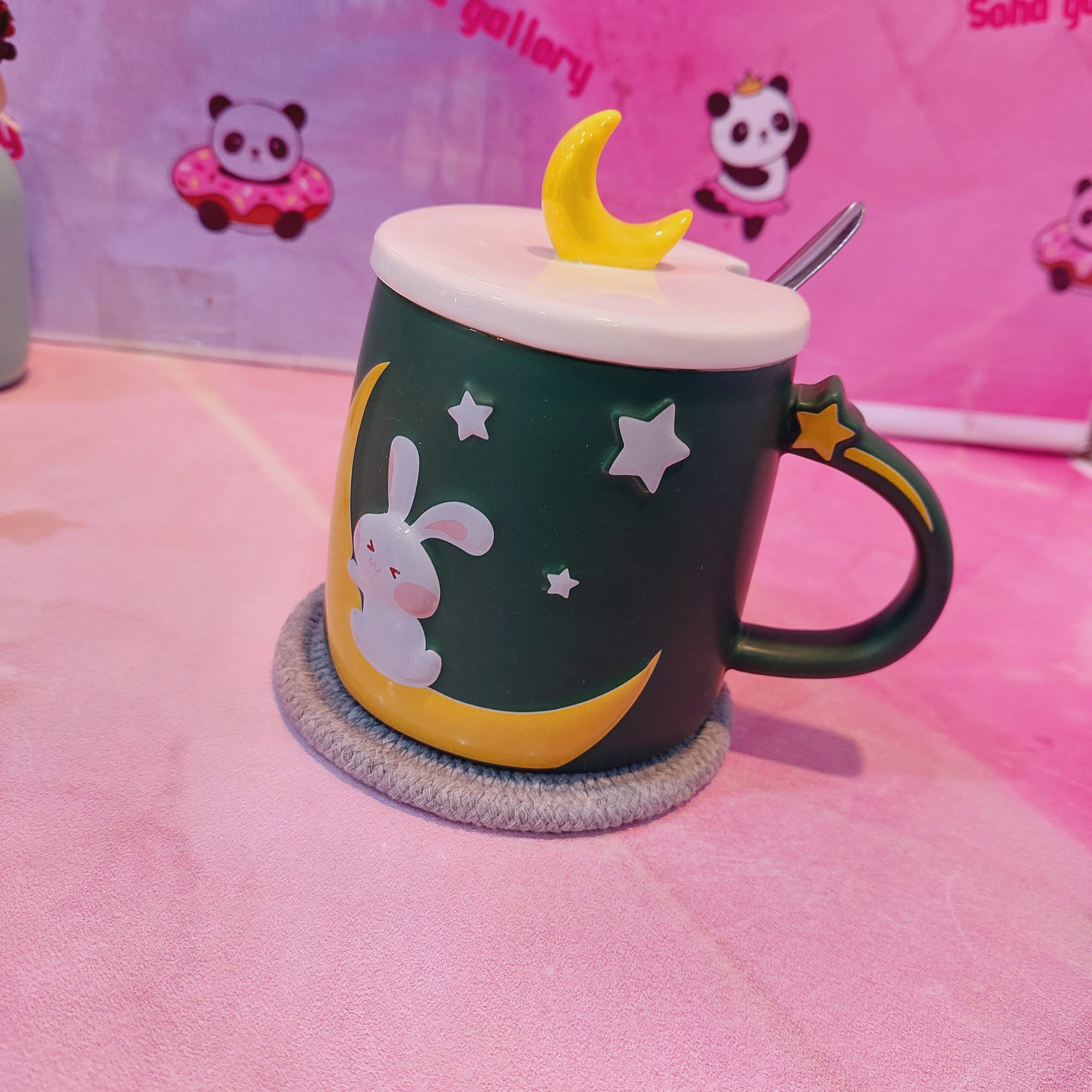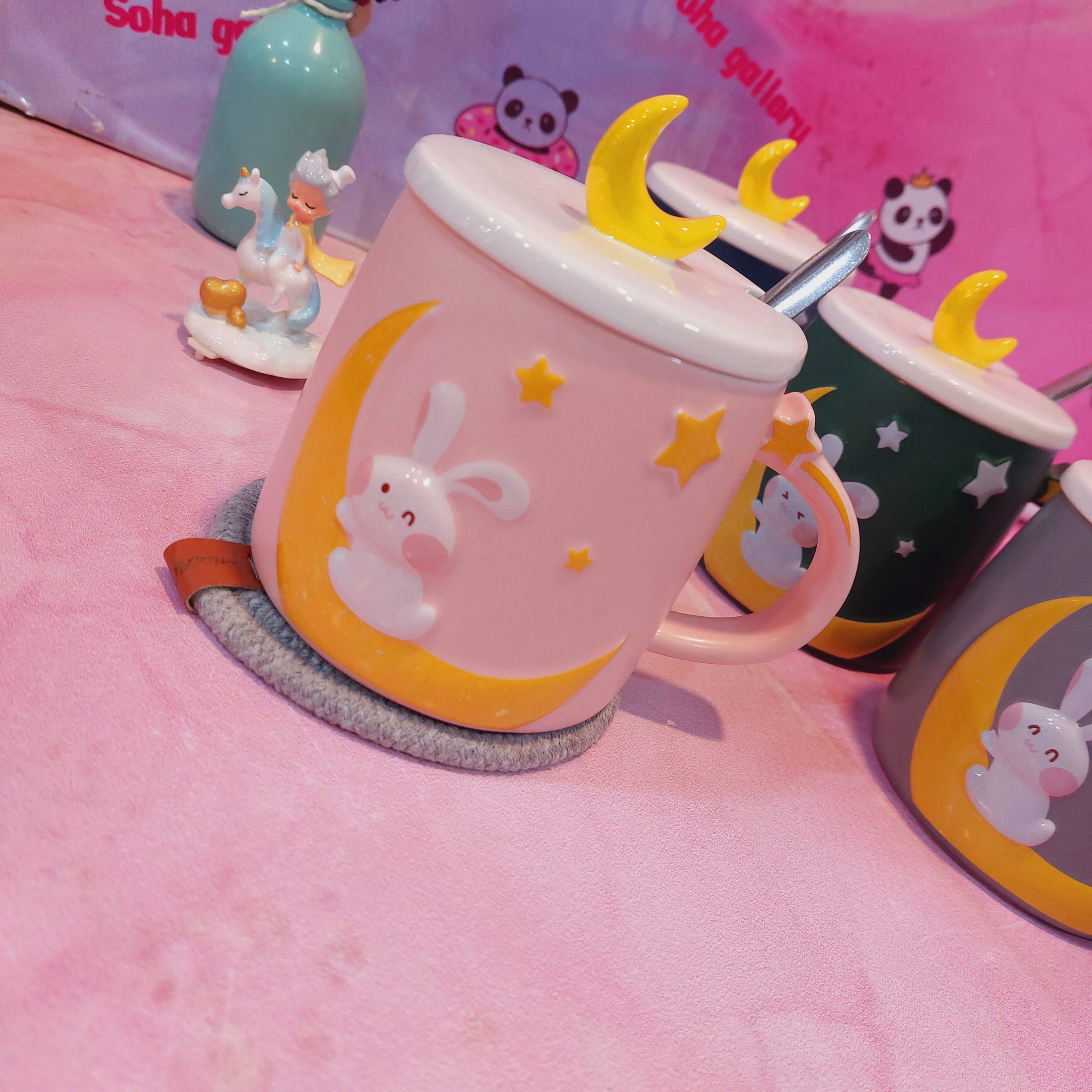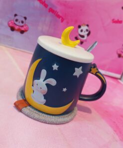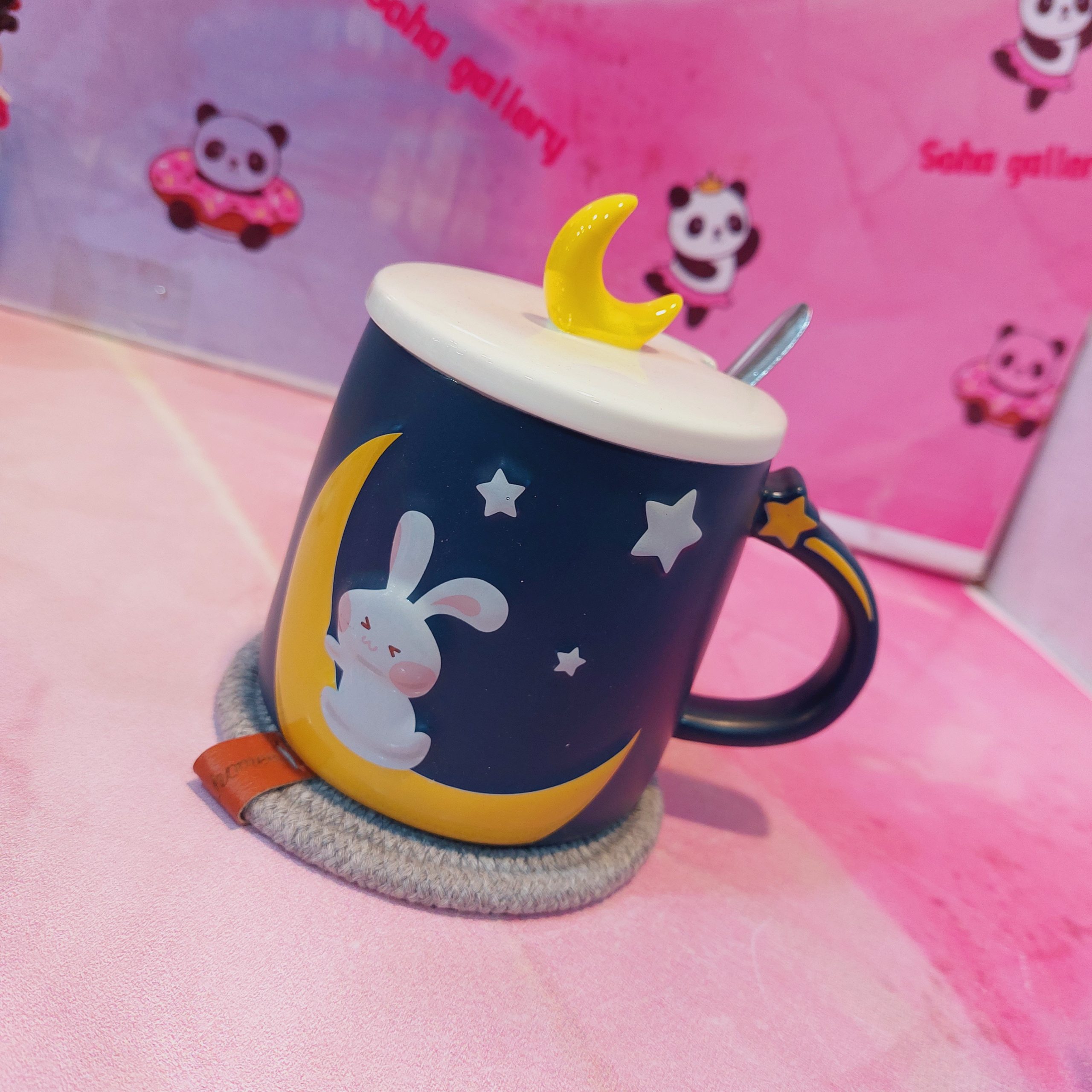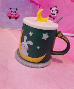 ماگ تمام سرامیکی خرگوش برجسته دارای درب سرامیکی برجسته