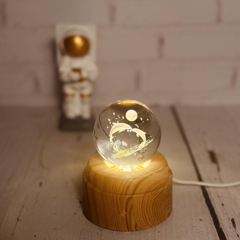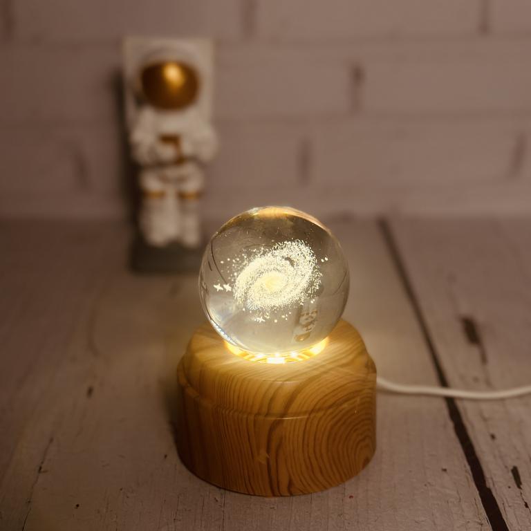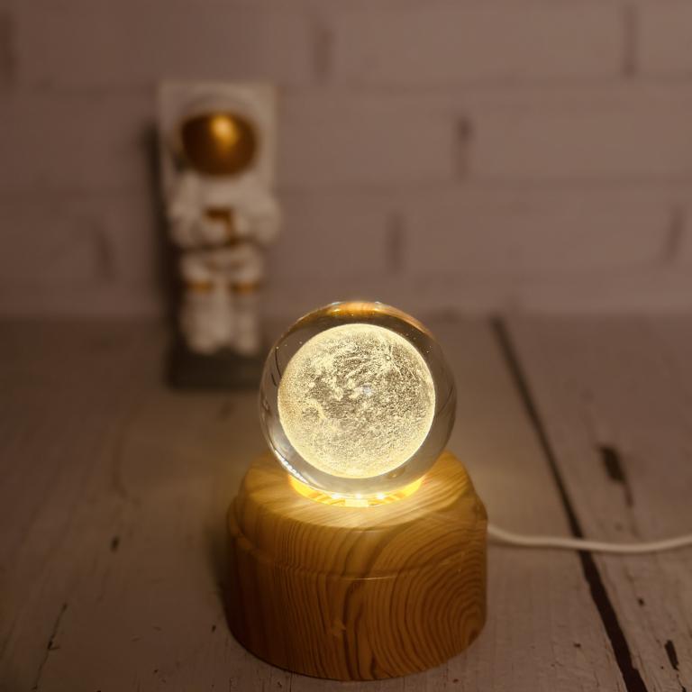 گوی کیرستالی چراغدار چرخشی دارای پایه چوبی است